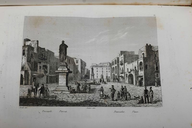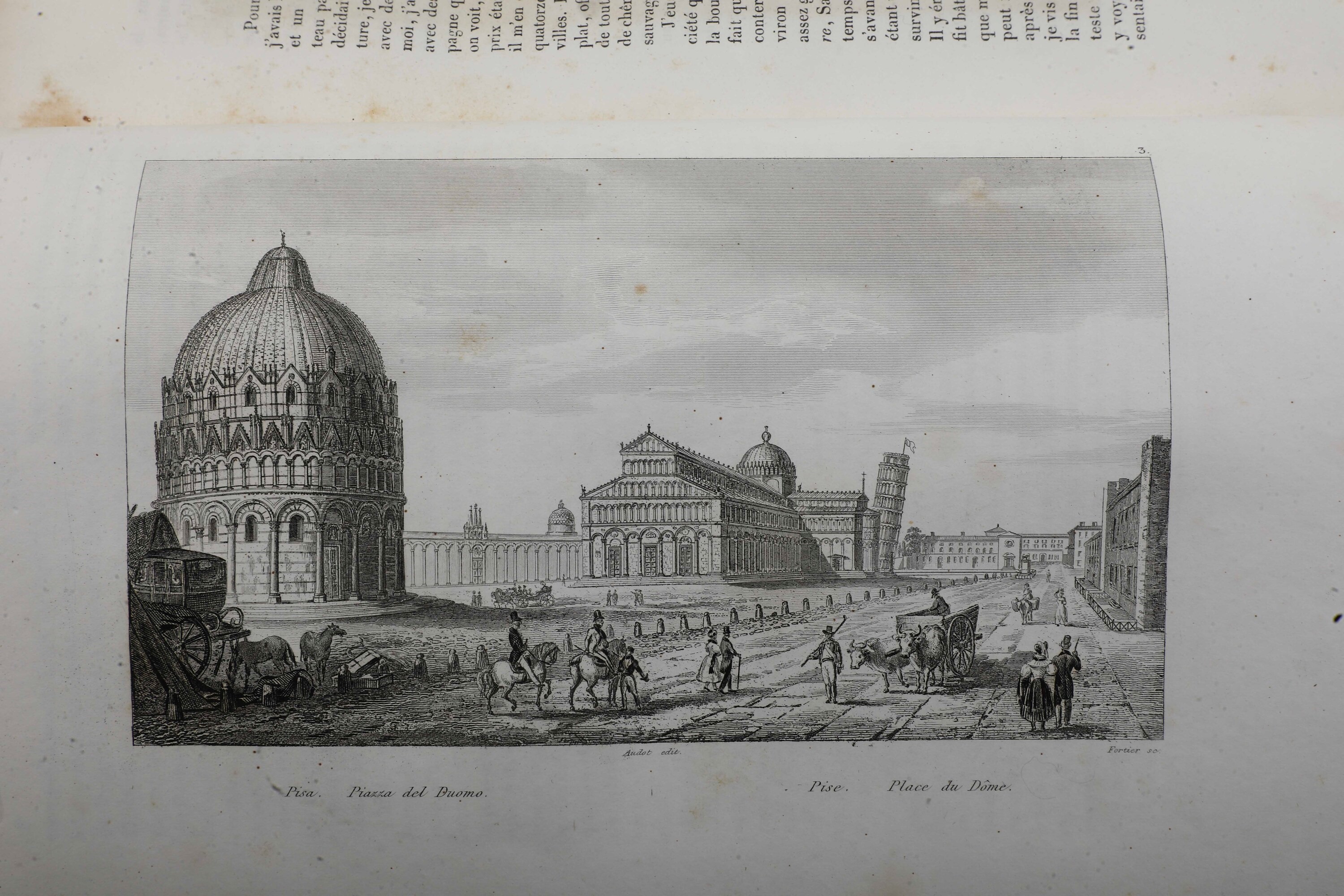 Un volume tratto dall'opera "Italie. La Sicile, Les Isles Eoliennes,.." In-folio. Rilegatura in mezza pelle del secolo XIX (usure, distacco parziale del dorso). Numerose belle tavole raffiguranti vedute e monumenti della Toscana. Esemplare fresco ma con alcune bruniture e foxing