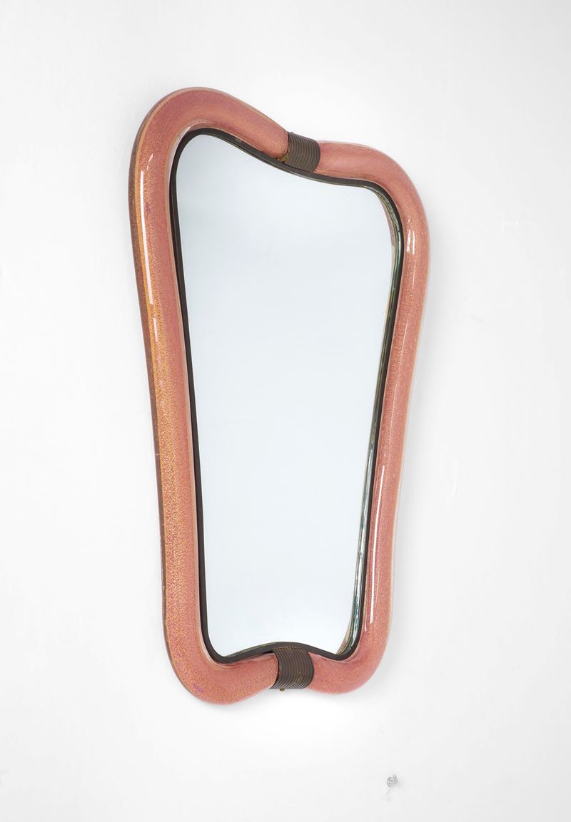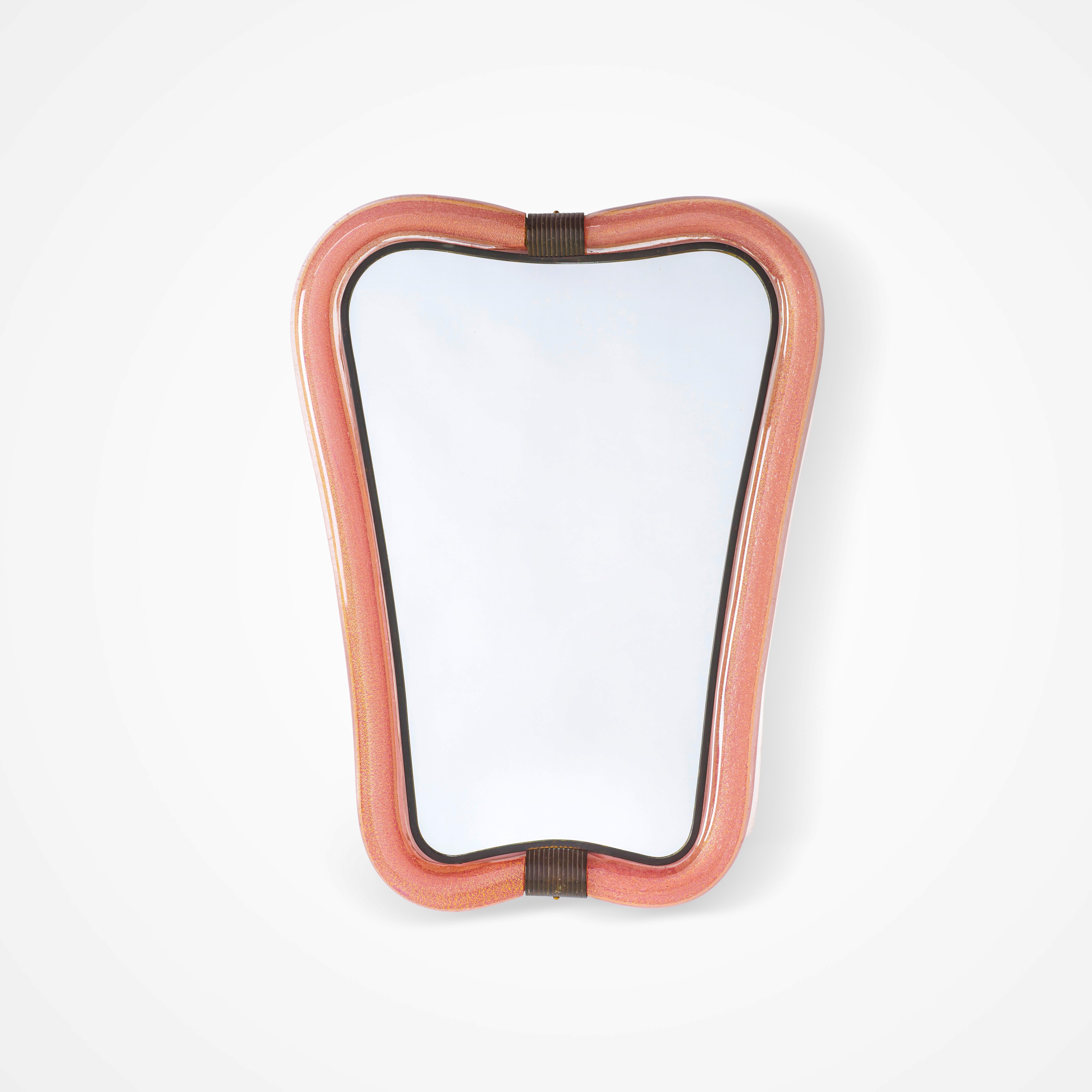 Cornice in vetro di Murano sommerso e foglia d'oro con profili in ottone. Dettagli in ottone.