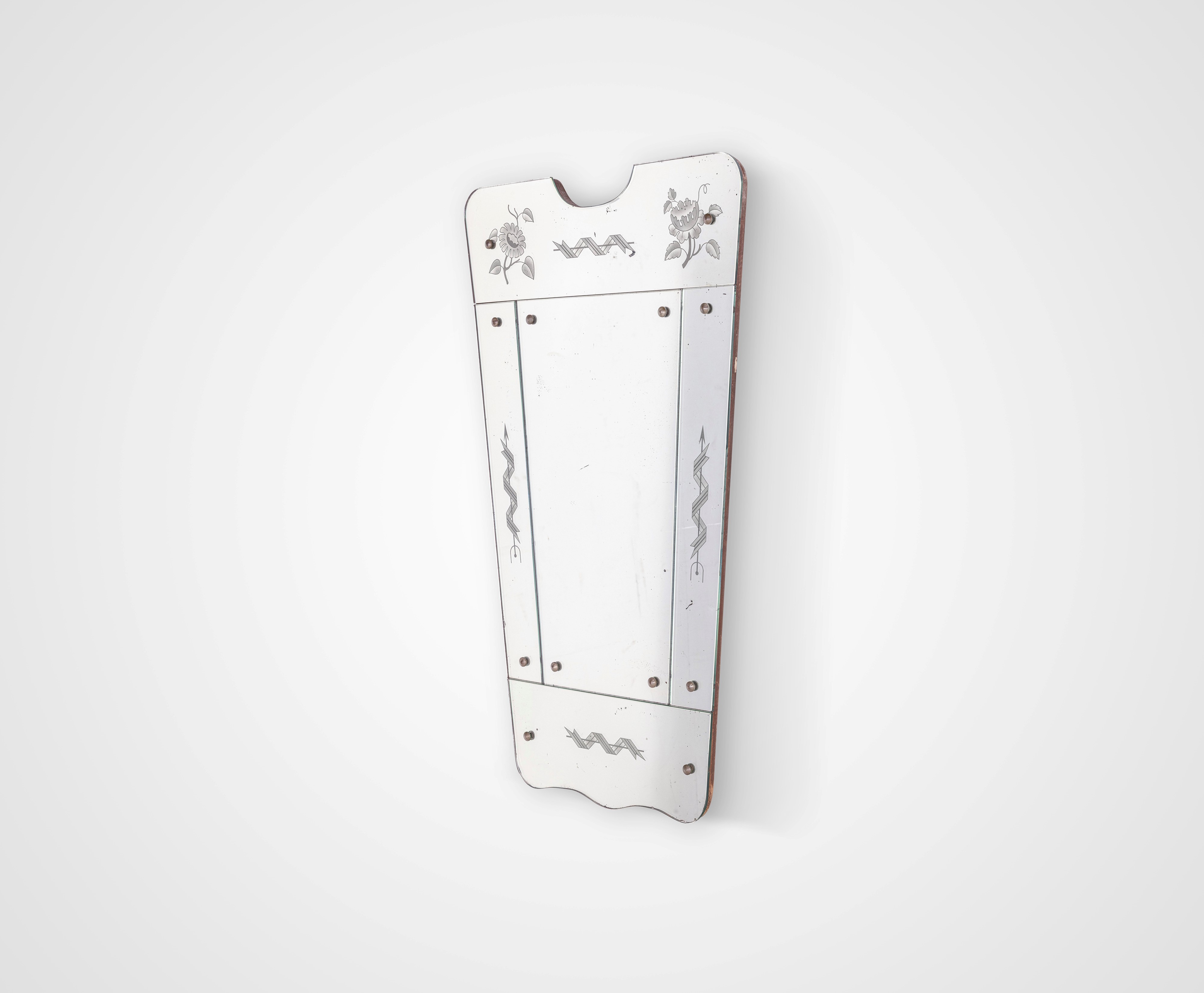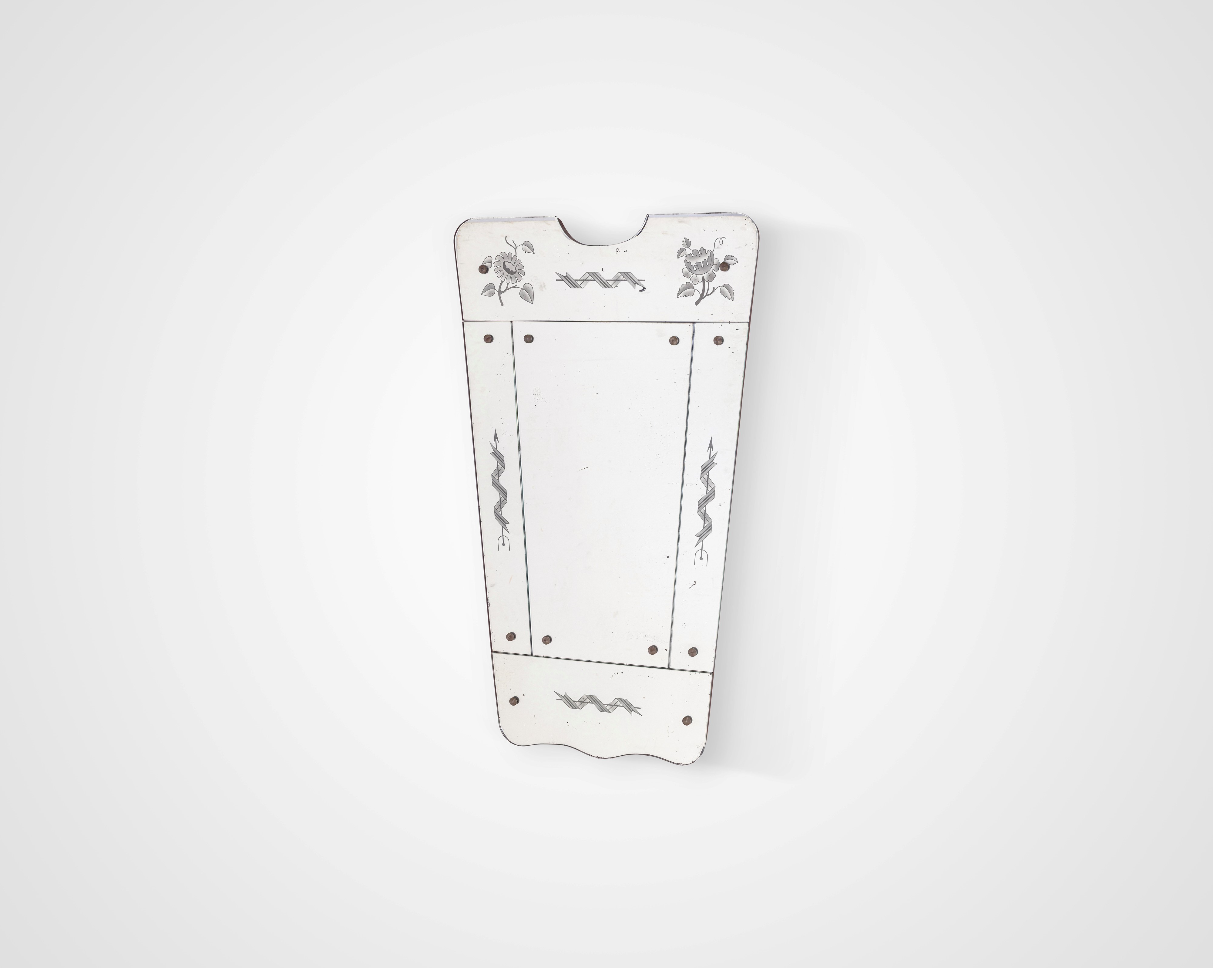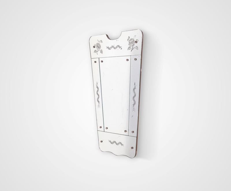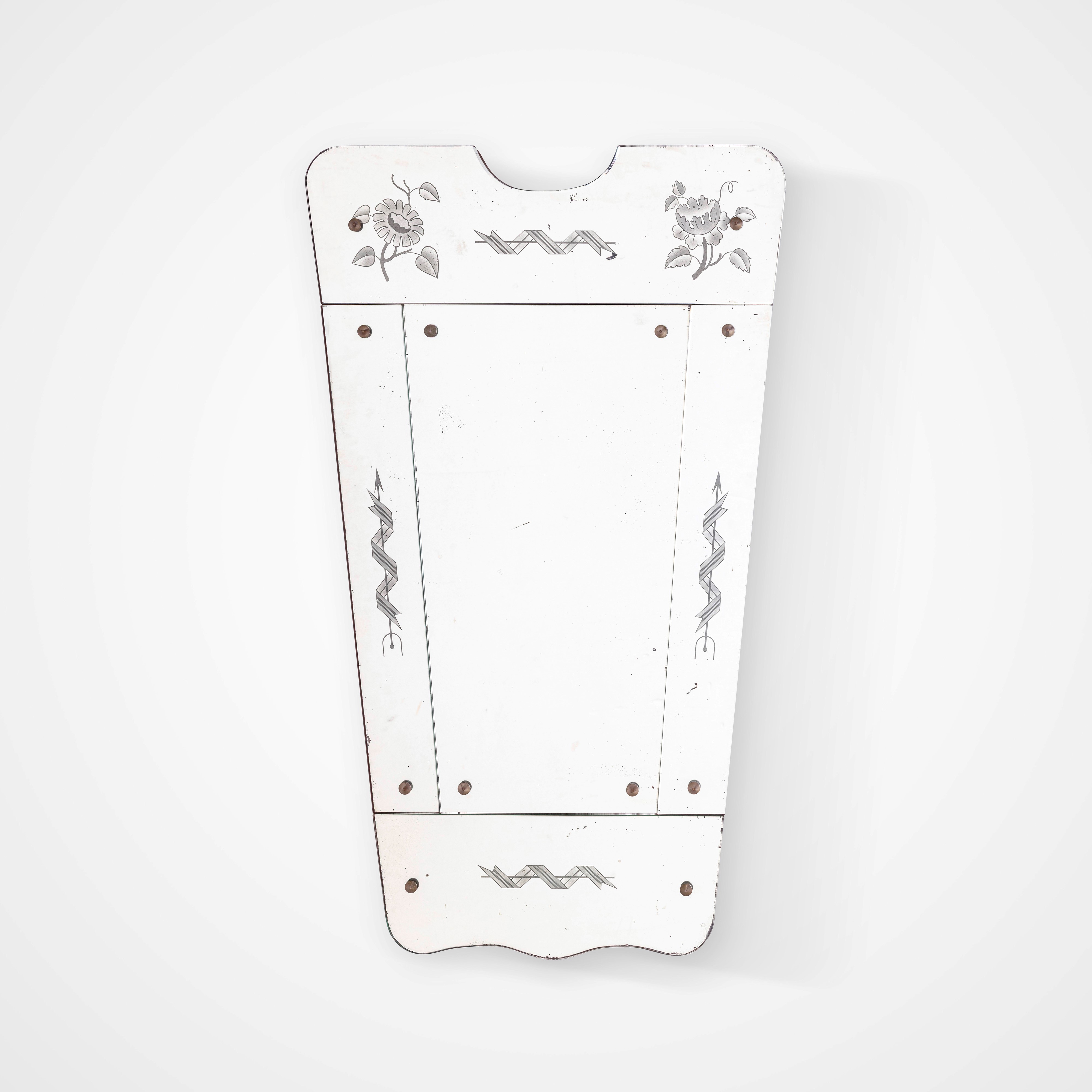 Struttura in legno e cristallo specchiato. Decoro inciso.