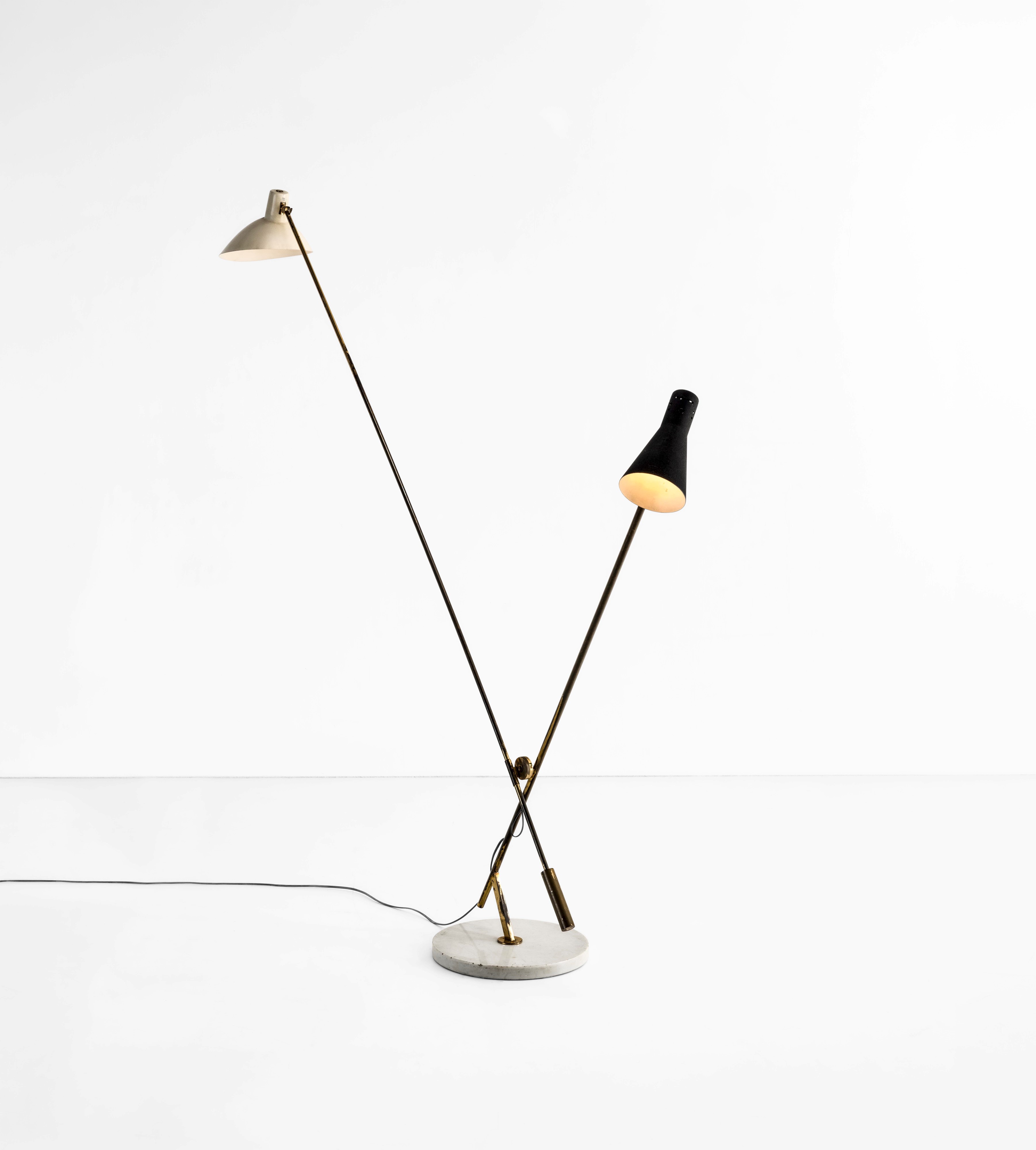 Struttura in ottone e diffusori in alluminio laccato. Base in marmo.