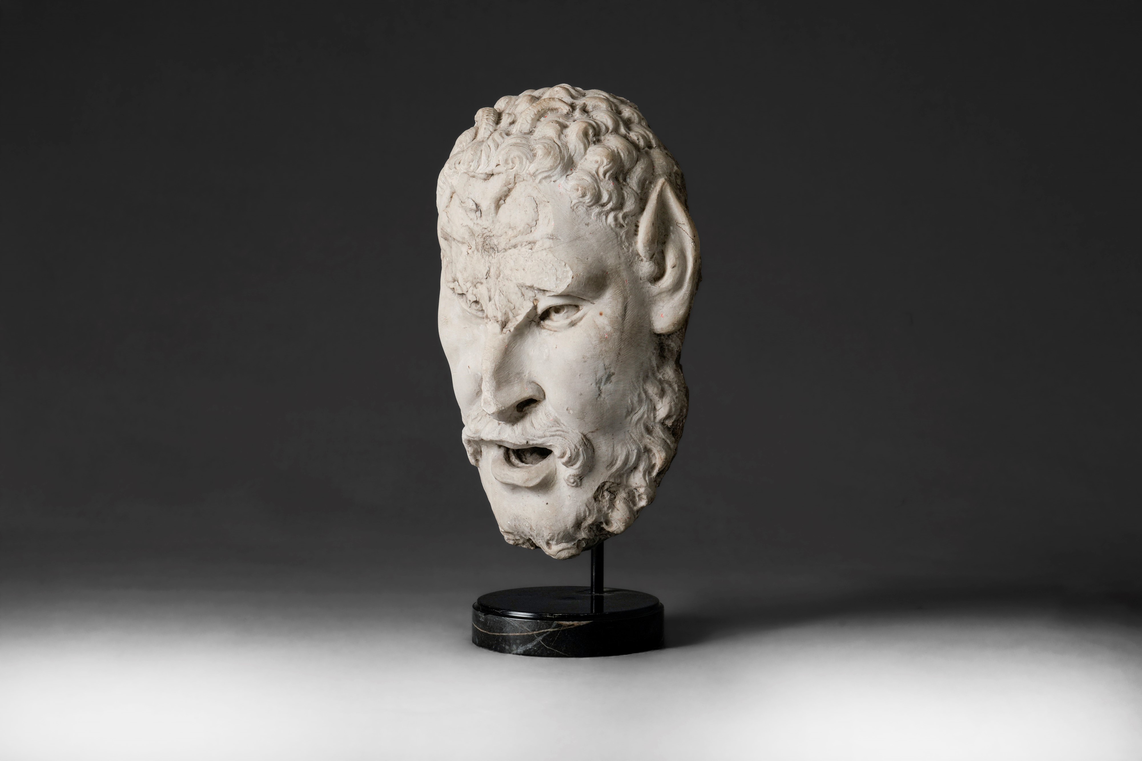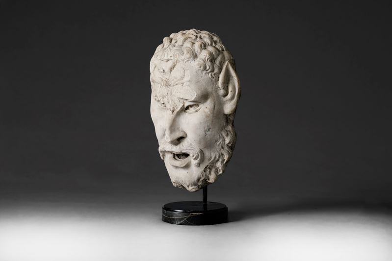 Mascaron with satyre. Marble, Italian Renaissance, 1500s