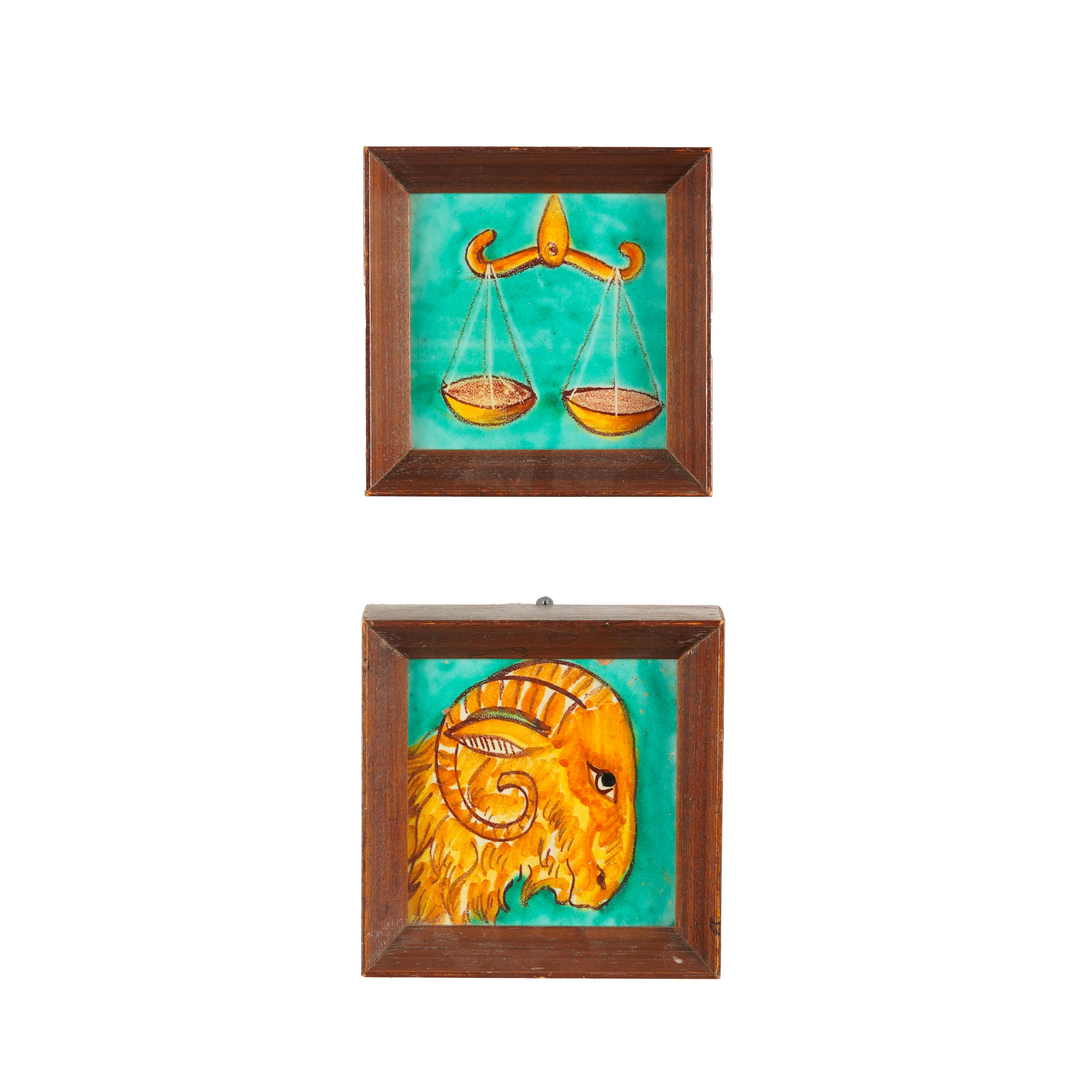 Coppia di placchette con segni zodiacali