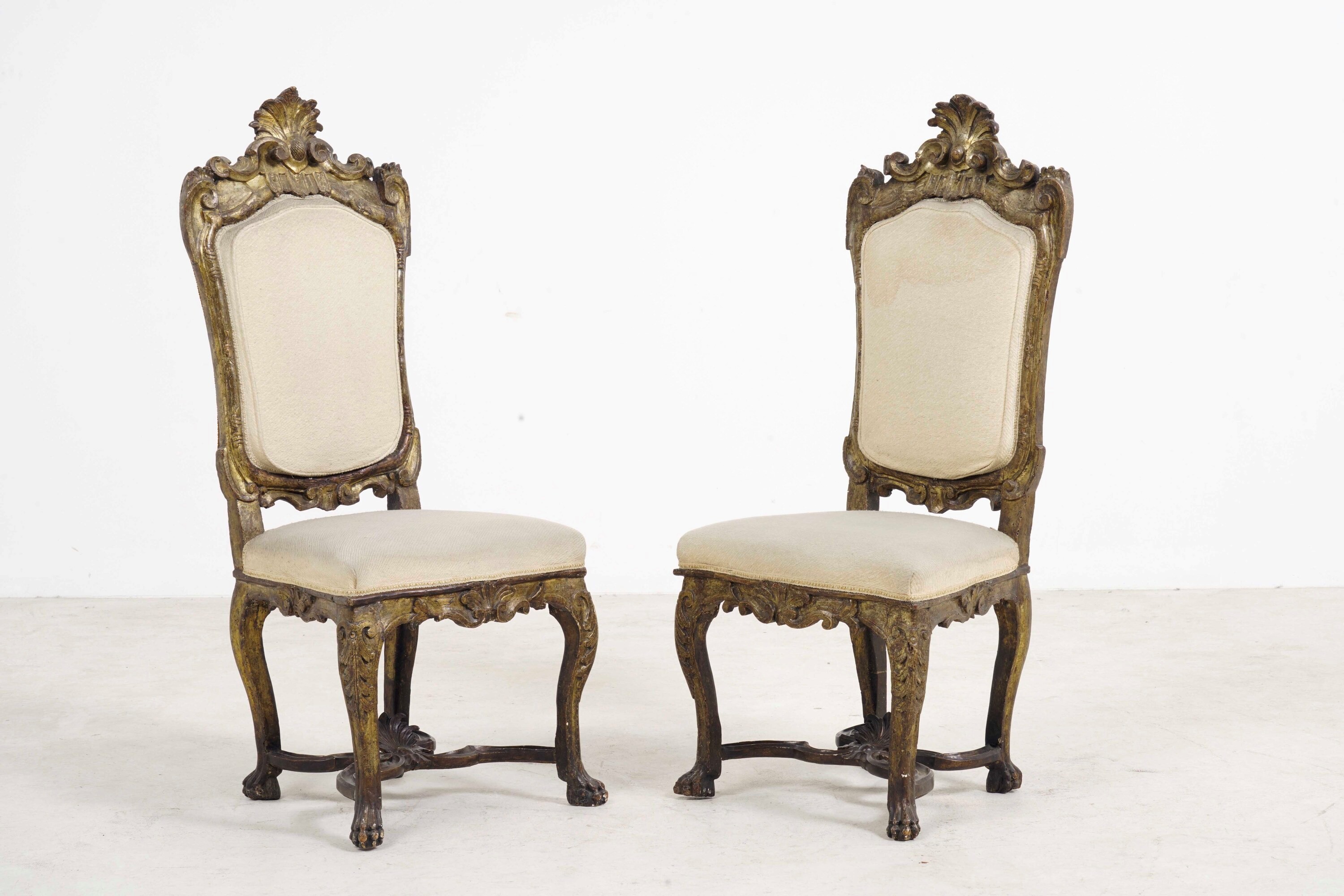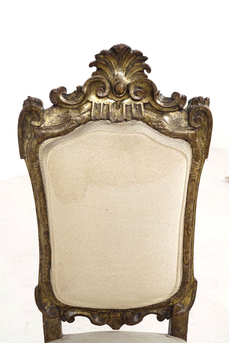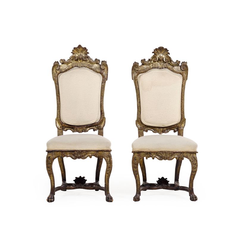 Coppia di sedie in legno intagliato e dorato. Italia meridionale, XVIII secolo
