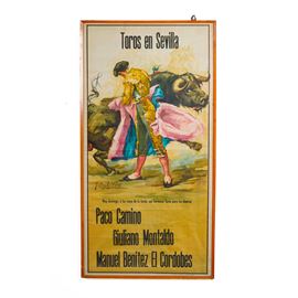 Uno dei soggetti promozionali per le corride spagnole, con due grandi toreri del passato: Paco Camino e Manuel Benitez Perez.