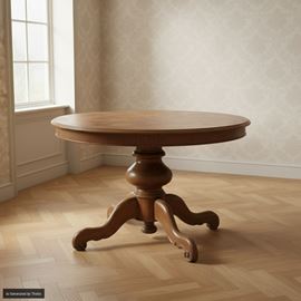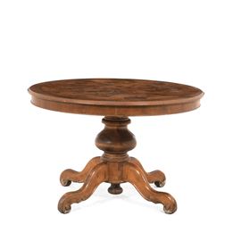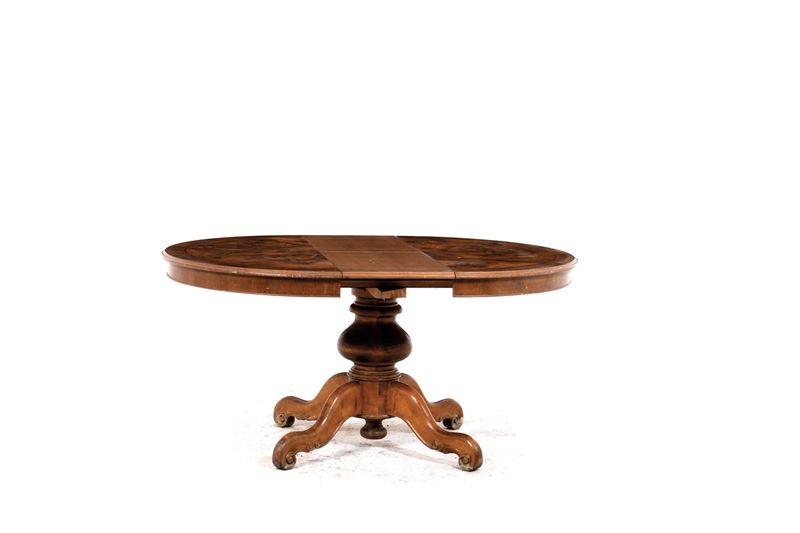 Tavolo circolare allungabile con fusto centrale, XX secolo