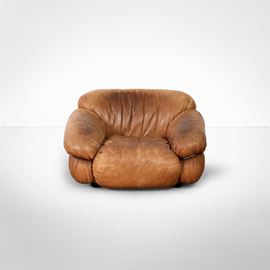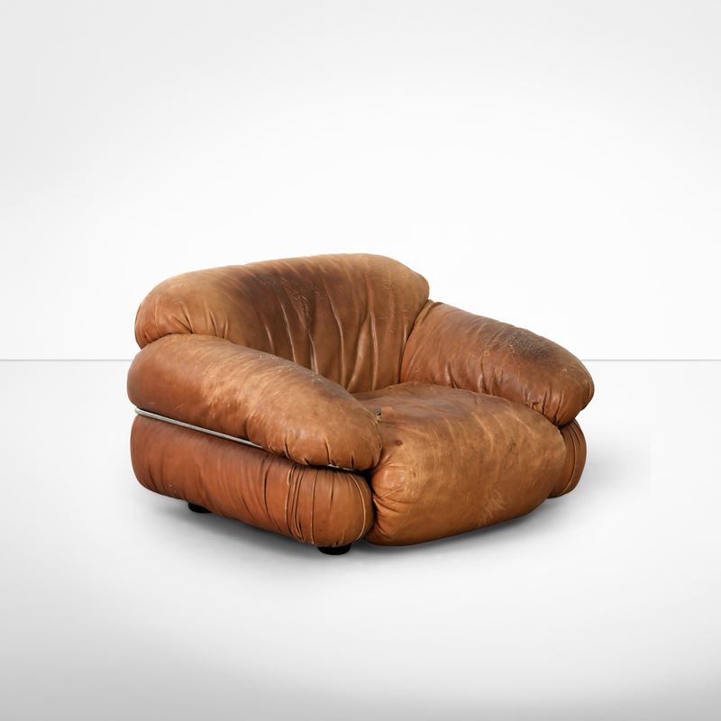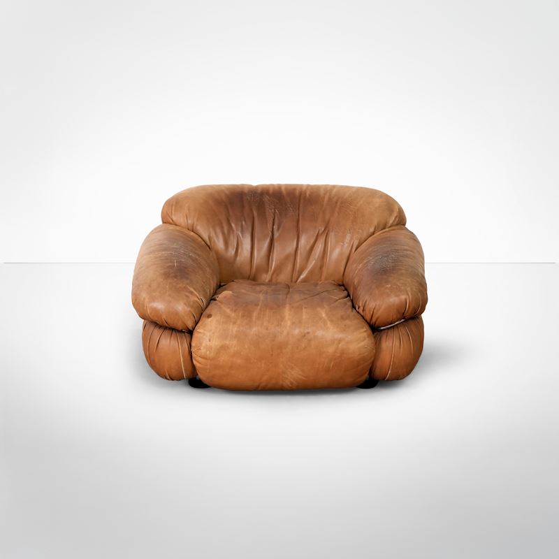 Struttura in legno e acciaio tubolare con rivestimento in cuoio.