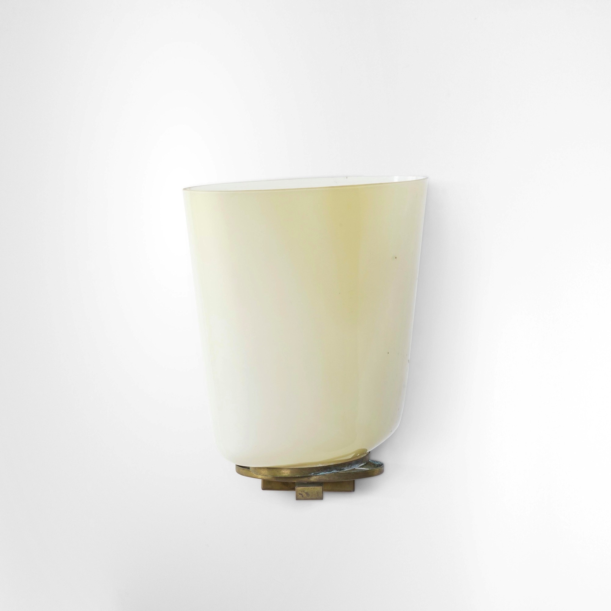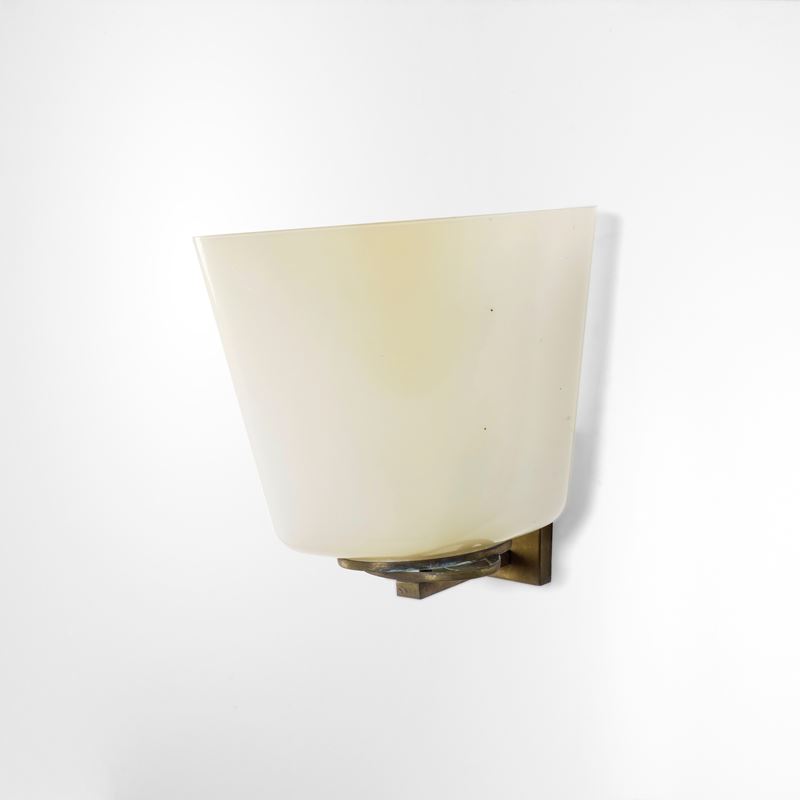 Struttura girevole in ottone con diffusore in vetro lattimo.