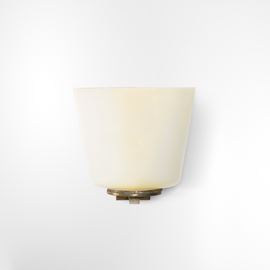 Struttura girevole in ottone con diffusore in vetro lattimo.