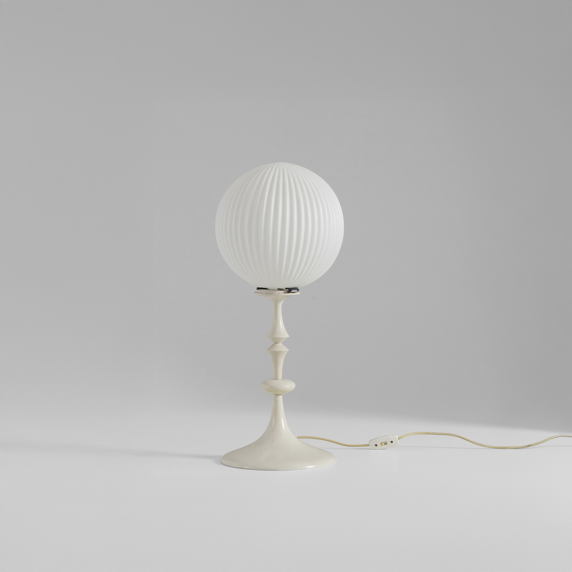 Struttura in legno laccato e diffusore in vetro opalino.