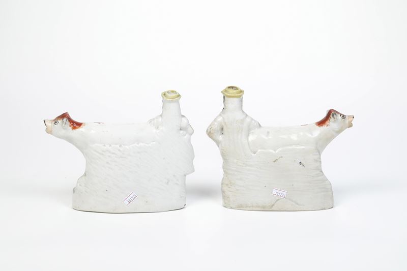 Coppia di "Cow Creamer". Inghilterra Staffordshire, periodo vittoriano, XIX secolo.