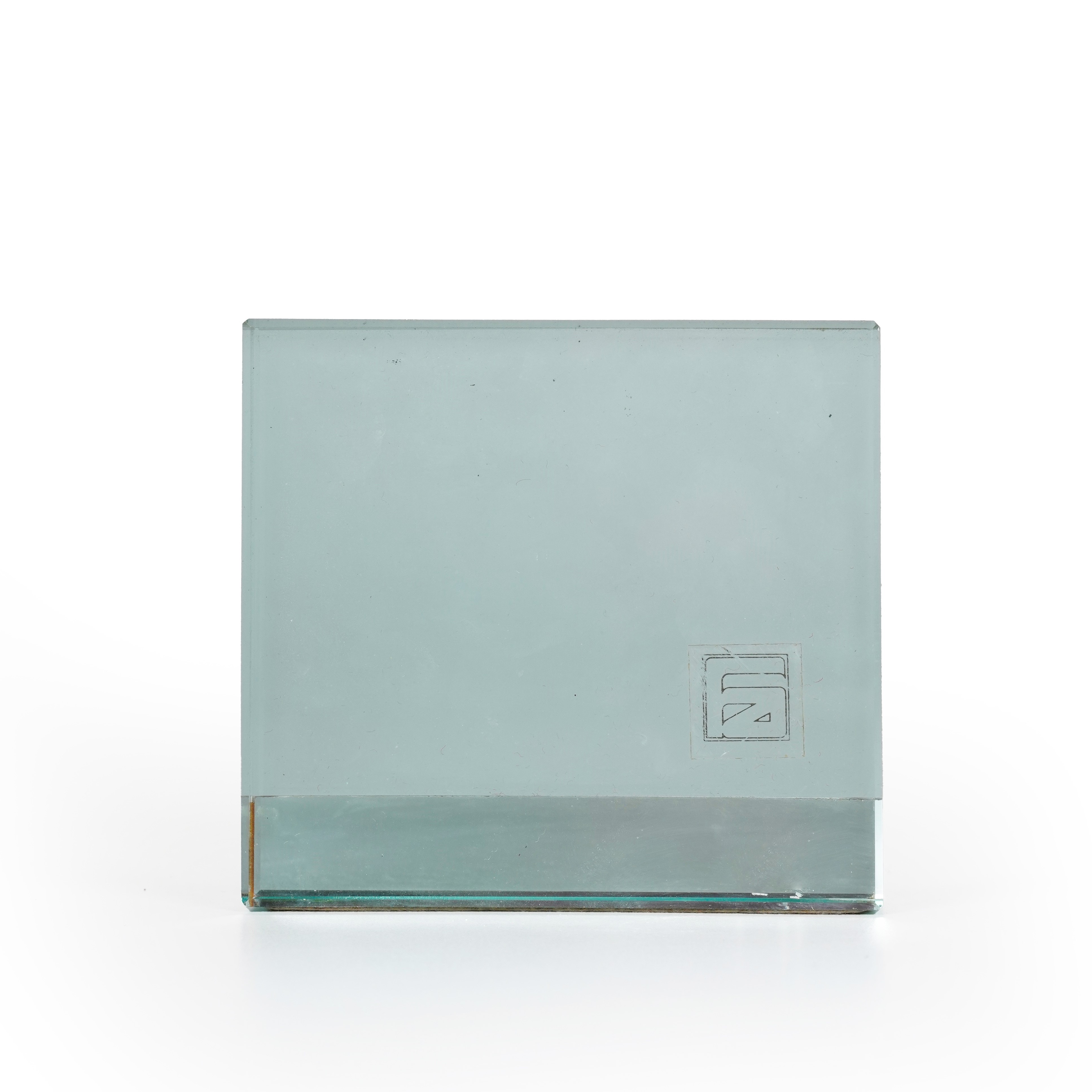 Porta foto formato da due elementi in vetro.