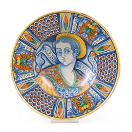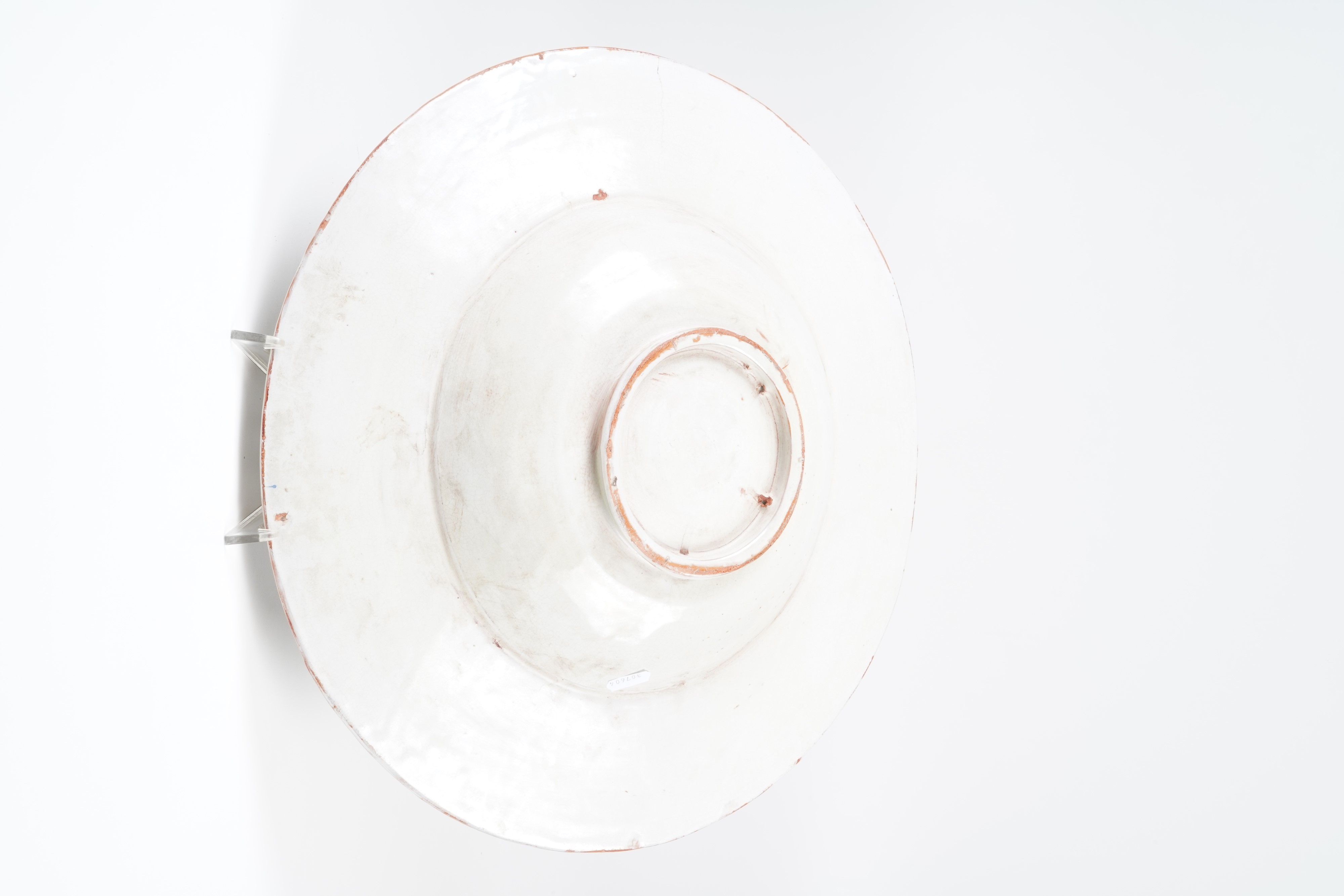 Maiolica. Marca: assente. Diametro cm 46. Conservazione: buona; insignificante felatura sulla tesa.