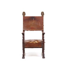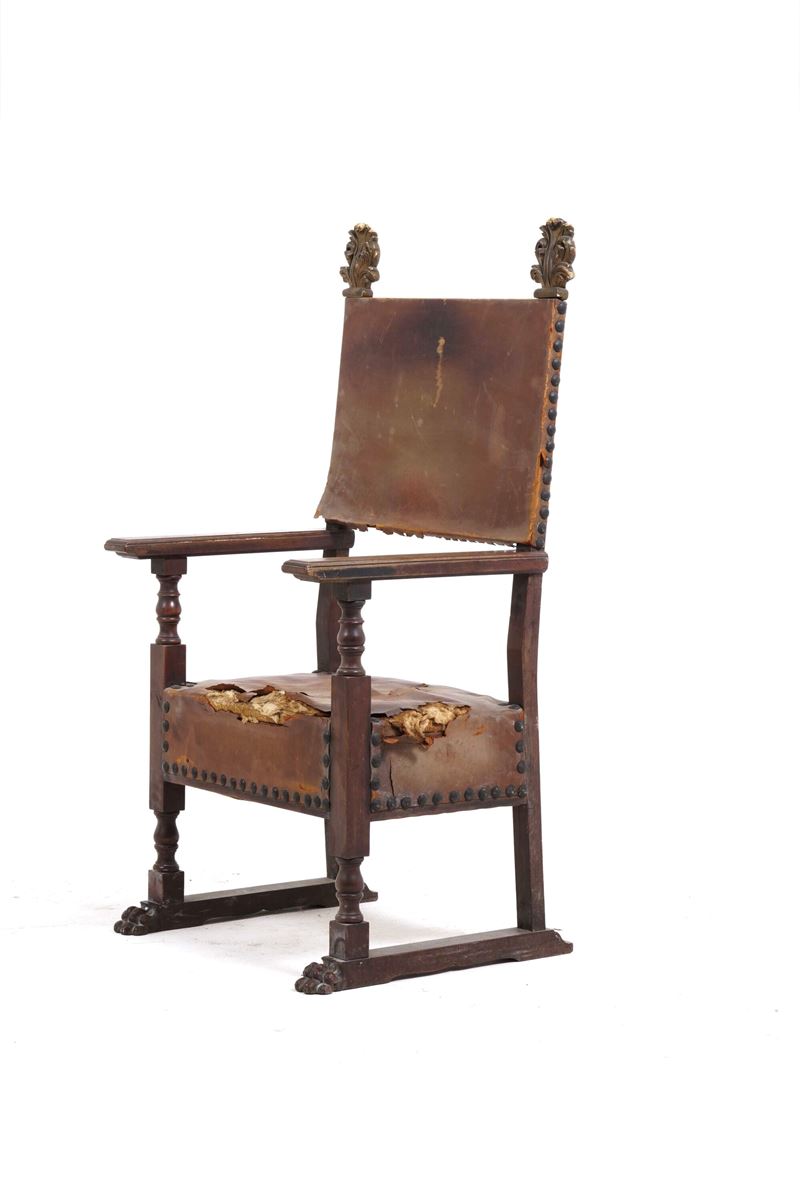 schienale fiammato in stile cinquecentesco e terminali intagliati