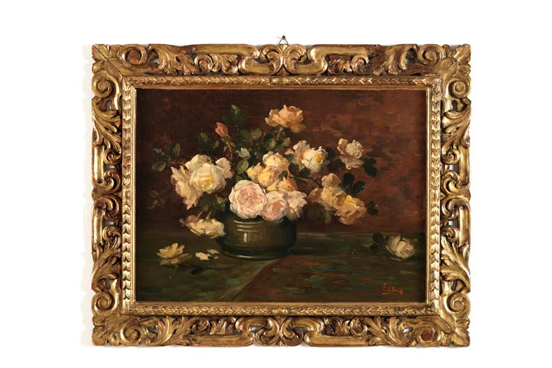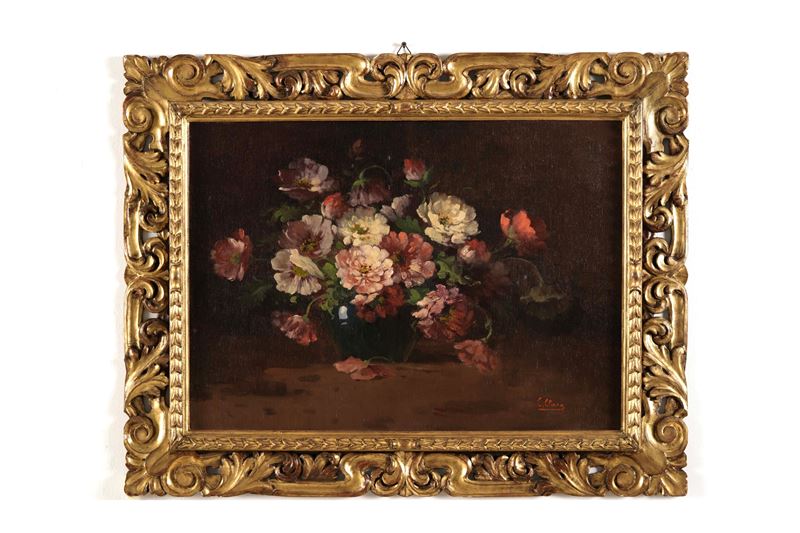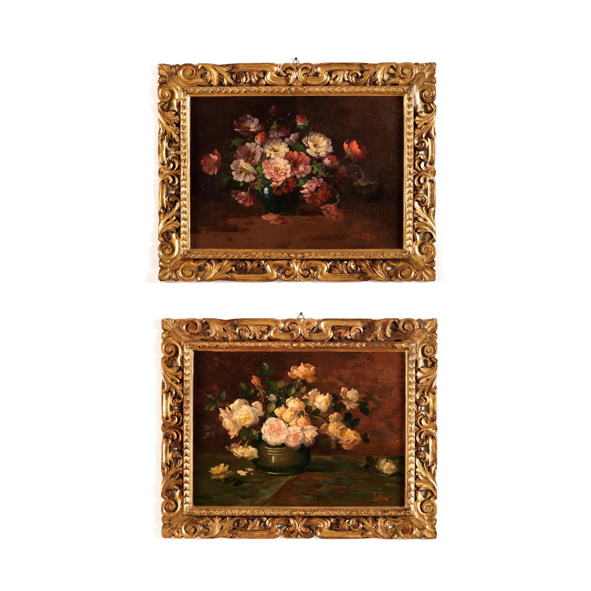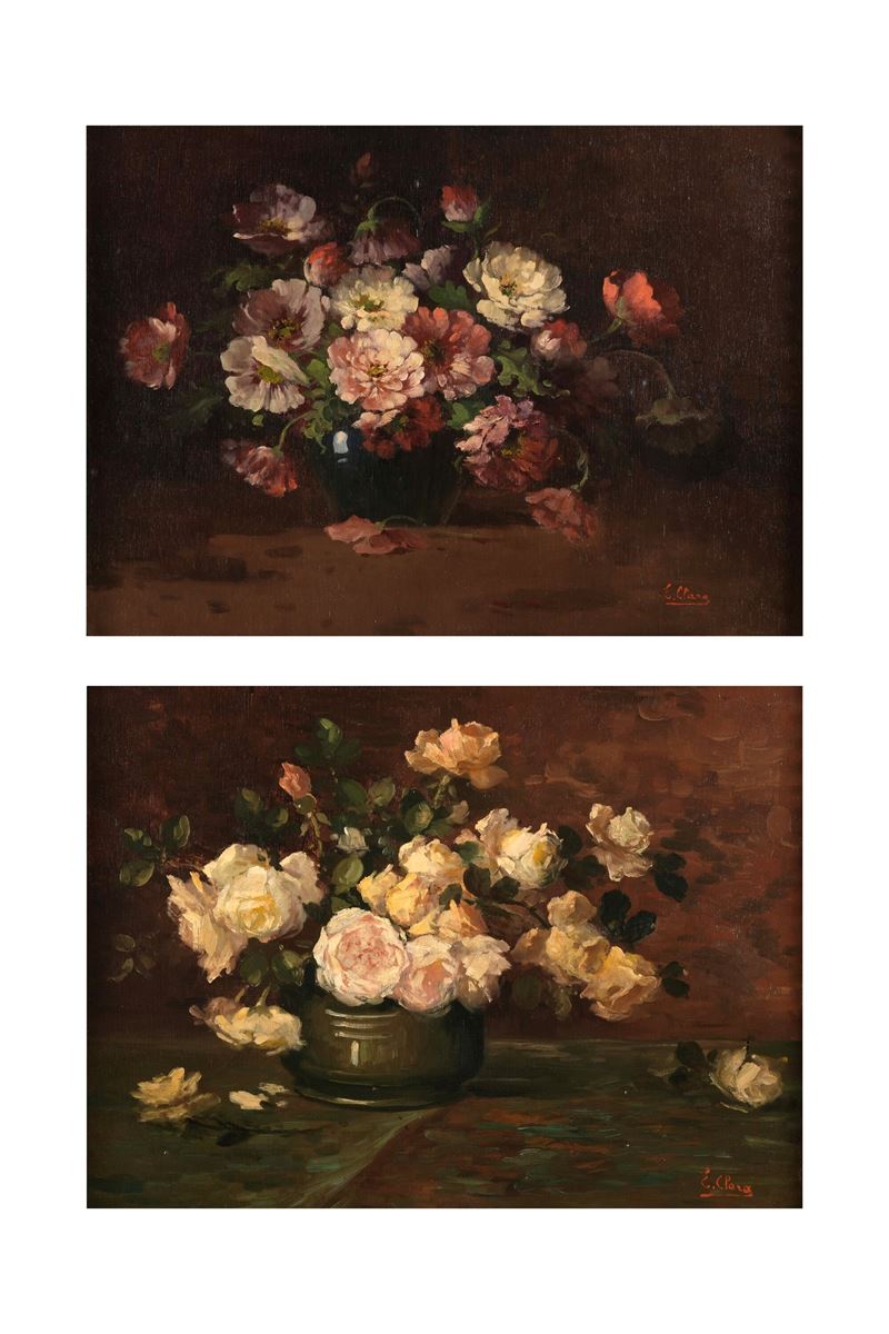 Anonimo del XIX-XX secolo (E. Clara ?) Coppia di nature morte floreali