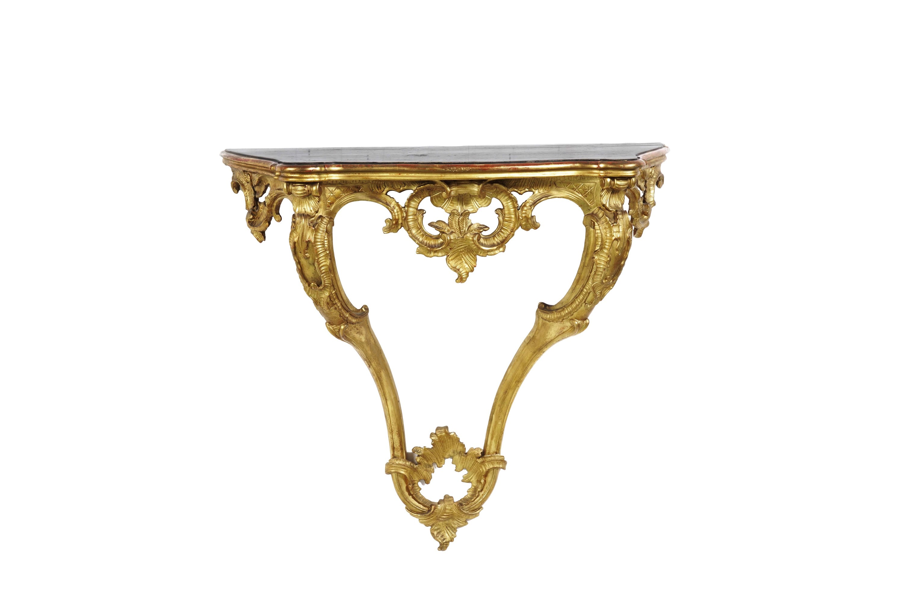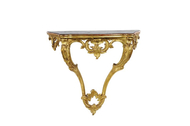 Consolle a goccia in legno intagliato e dorato. XVIII-XIX secolo