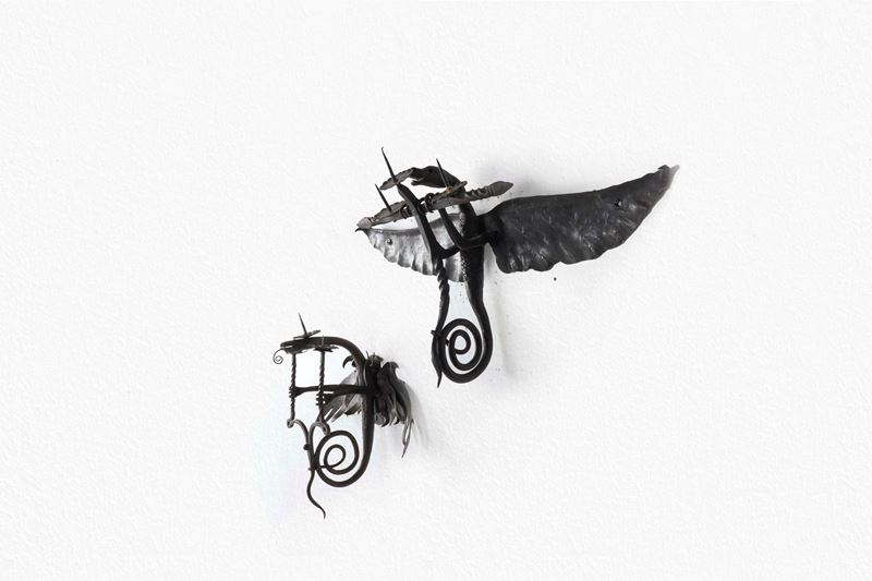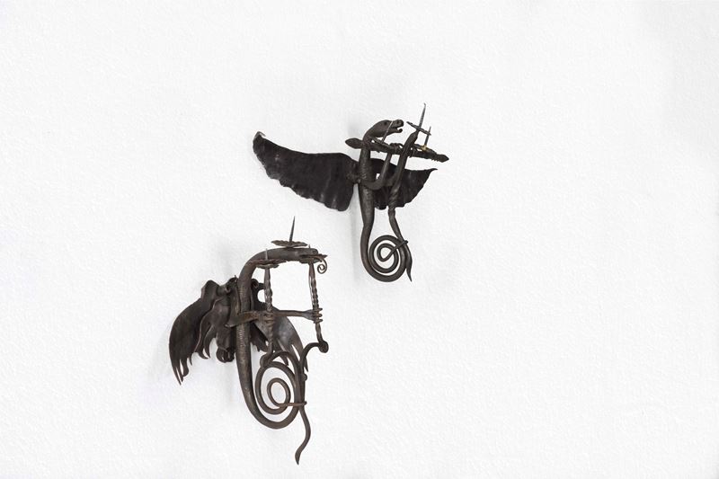 Coppia di appliques in ferro a guisa di draghi