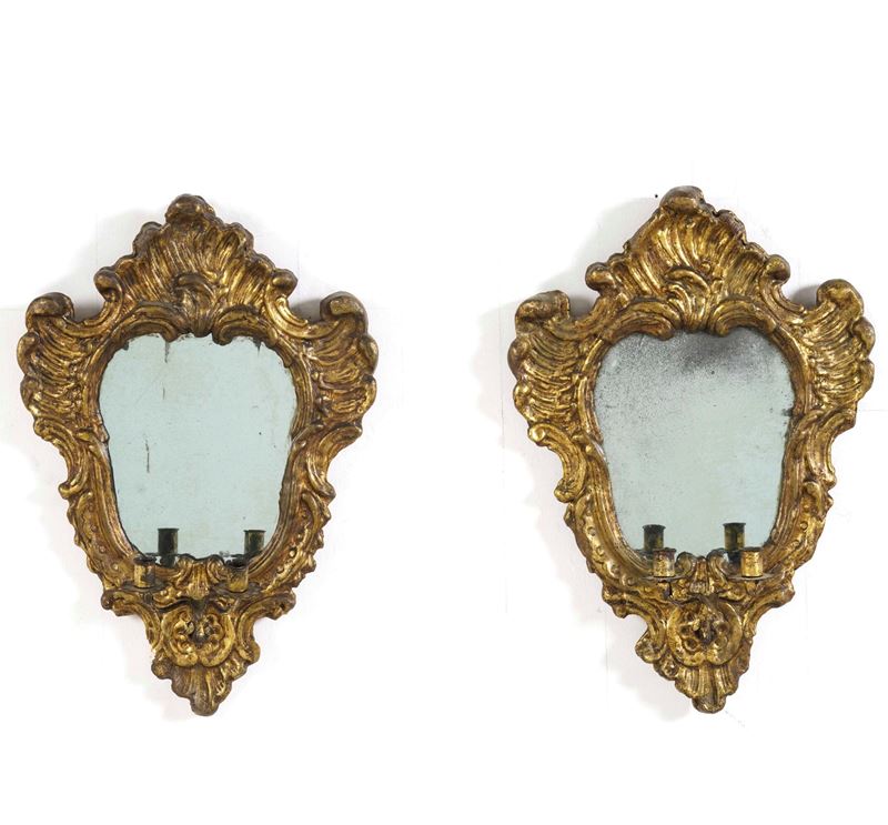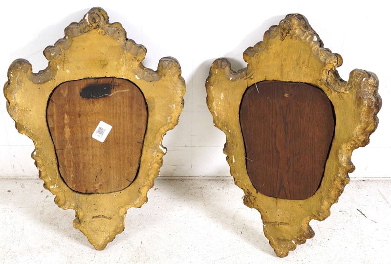 Coppia di ventoline in legno intagliato e dorato. XVIII-XIX secolo