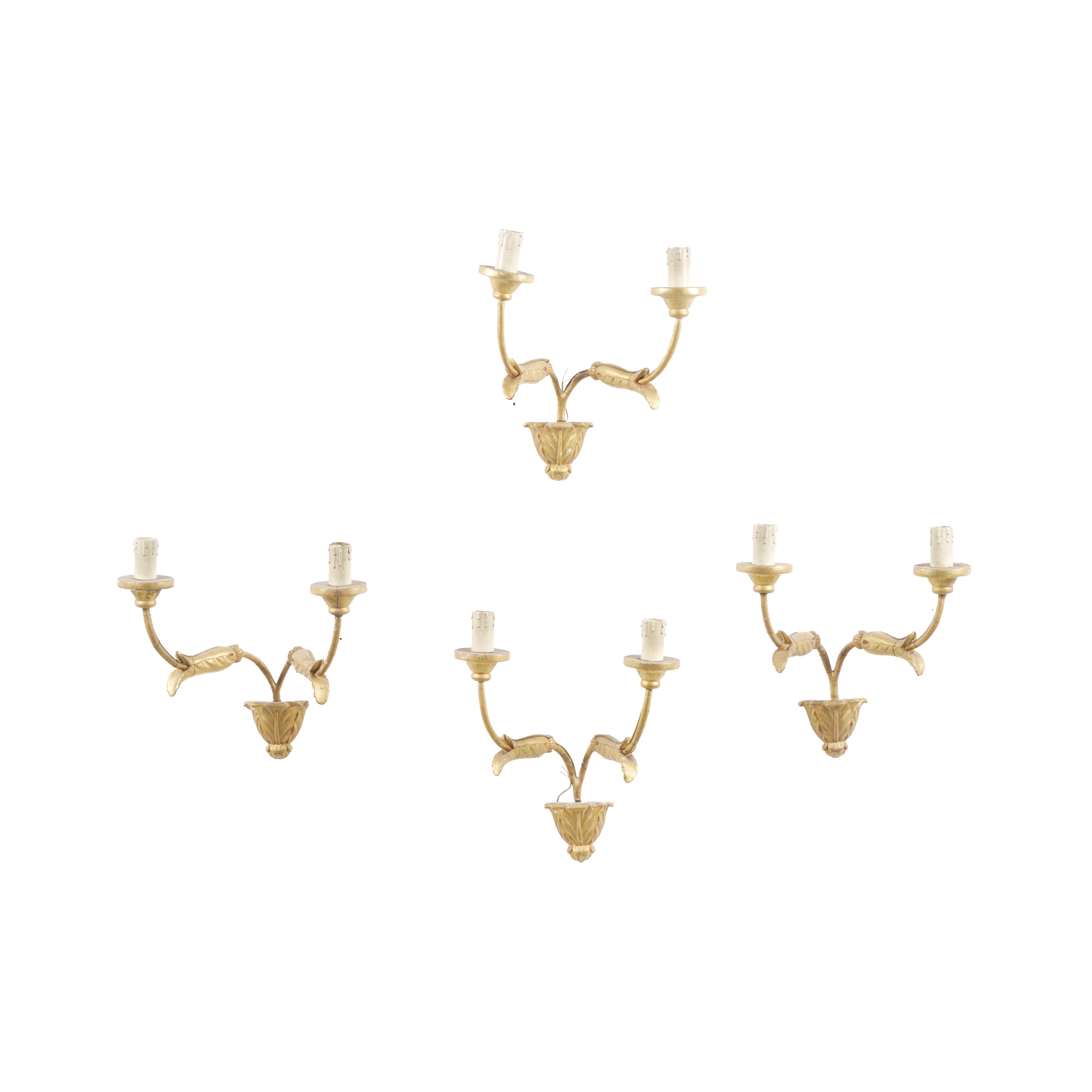 Quattro appliques in legno intagliato e dorato