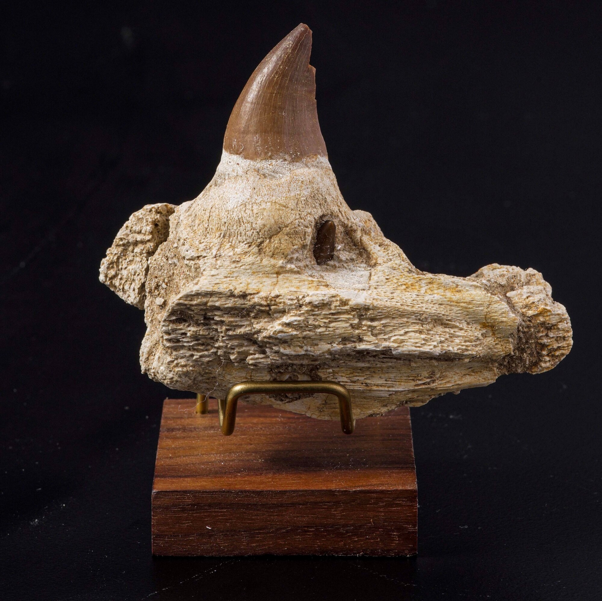 Rarissima mascella di Mosasauro sp. Leiodon Anceps, con dente sostitutivo in crescita dalla radice