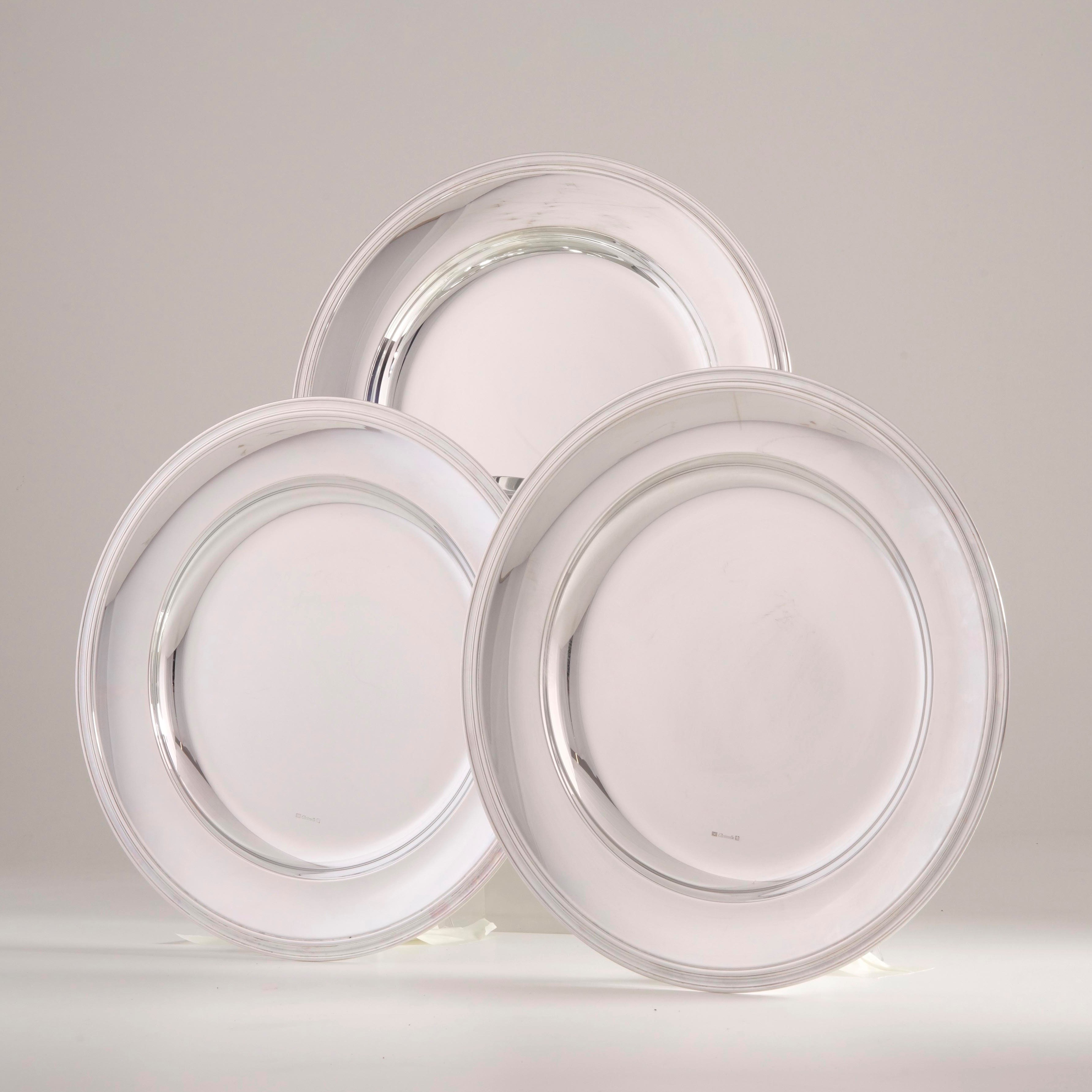 Tre piatti in metallo argentato Christoffle