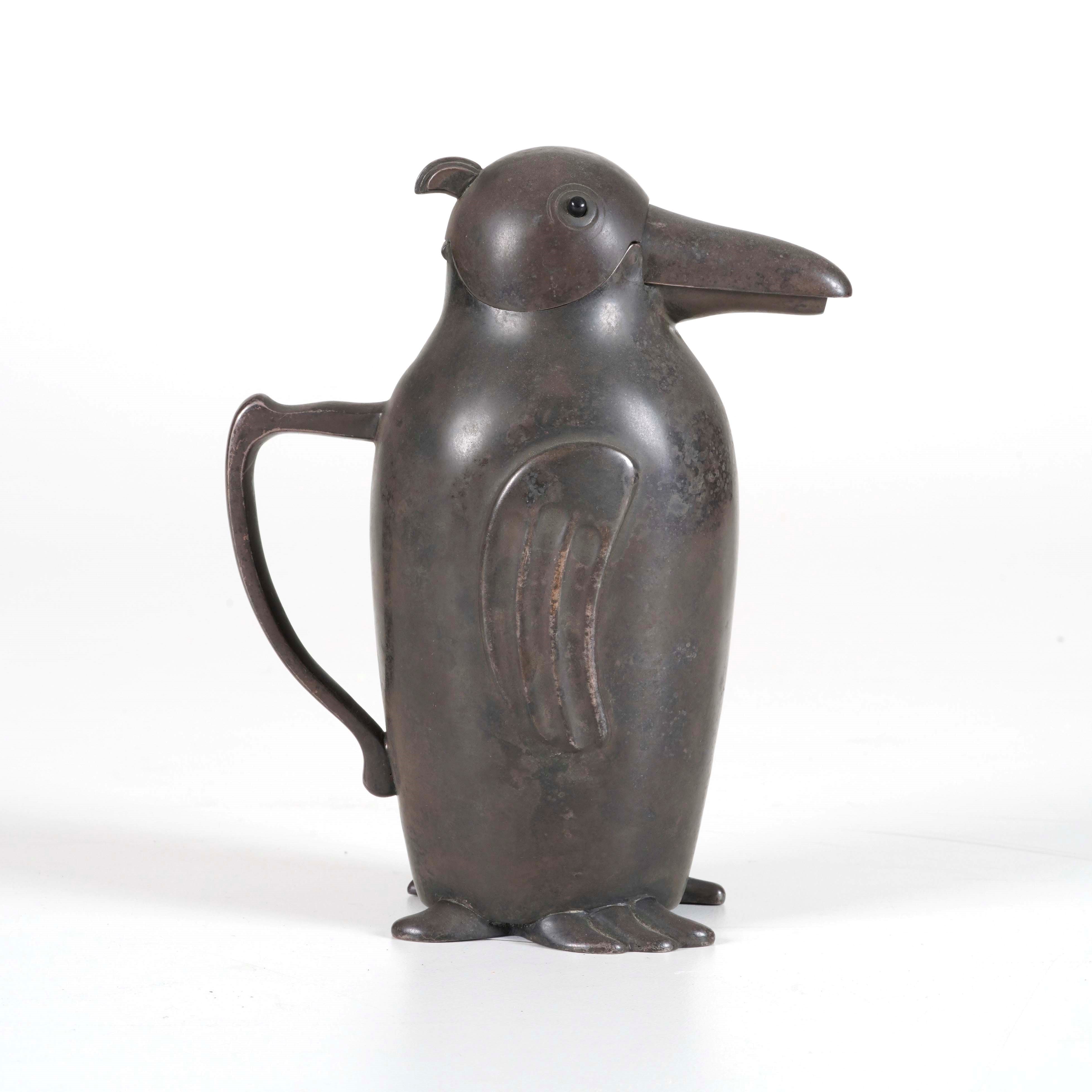 Bricco versatoio in metallo a foggia di pinguino