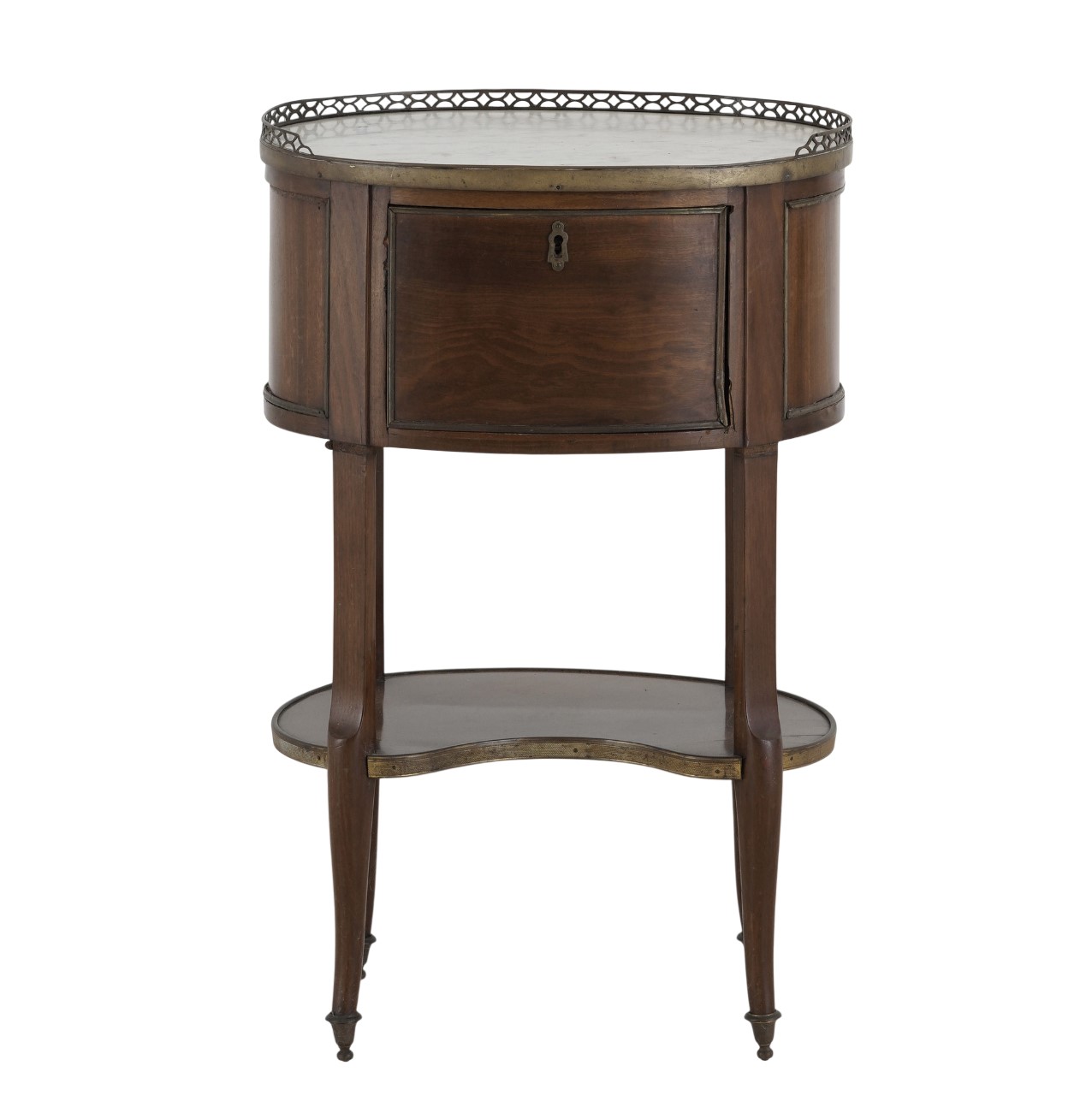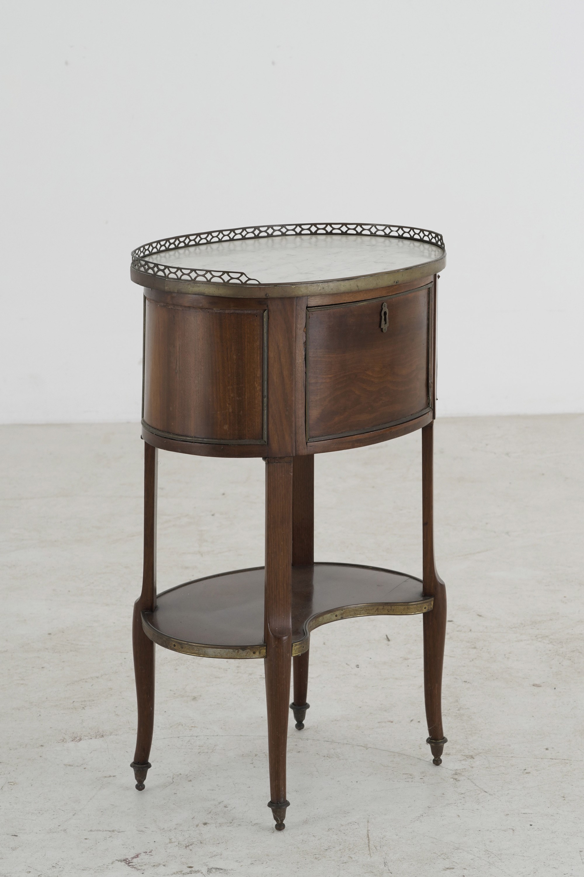 Un’anta sul fronte, piano in marmo incassato entro ringhierina in bronzo dorato, gambe riunite da pianetto sagomato
