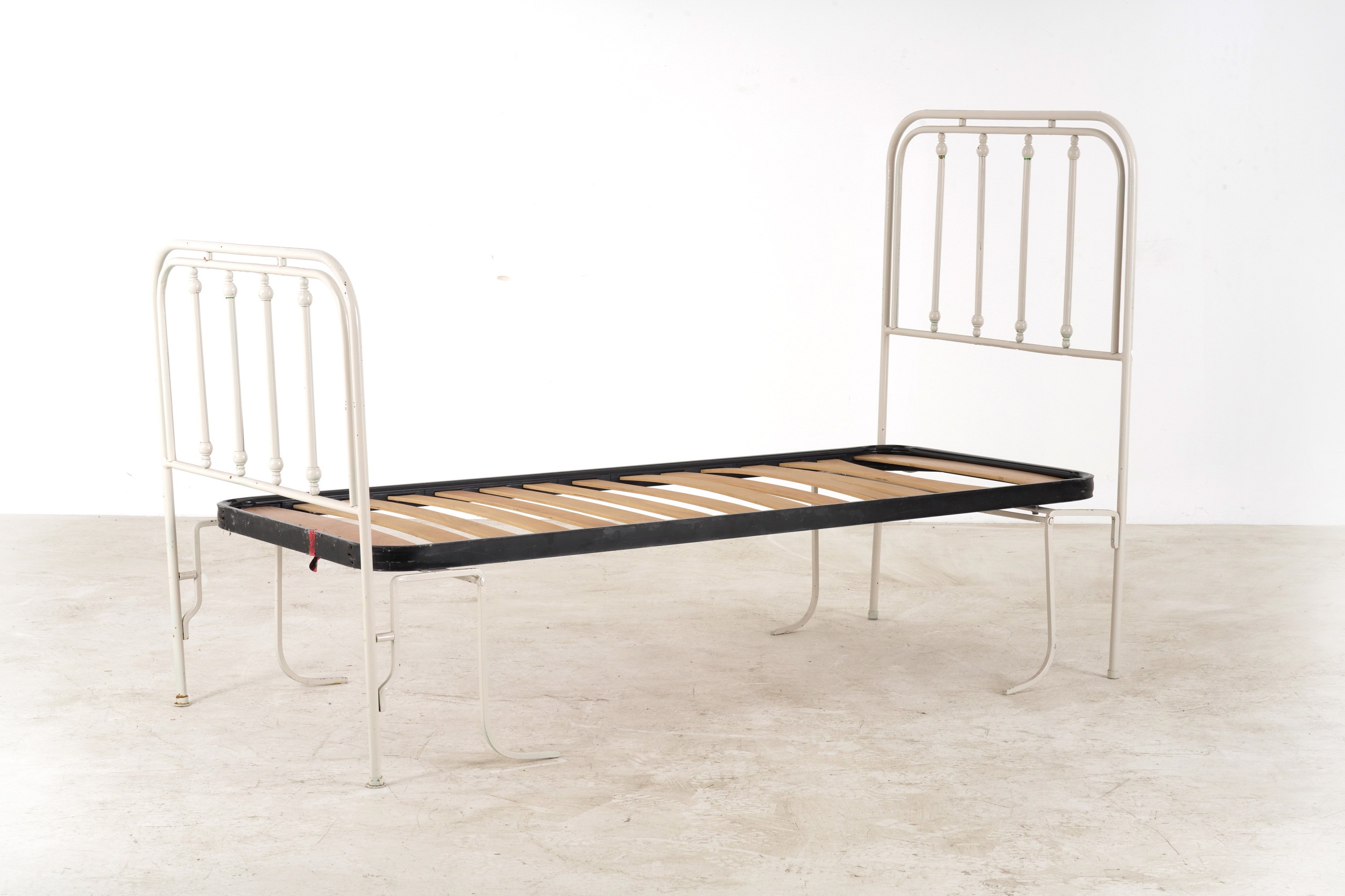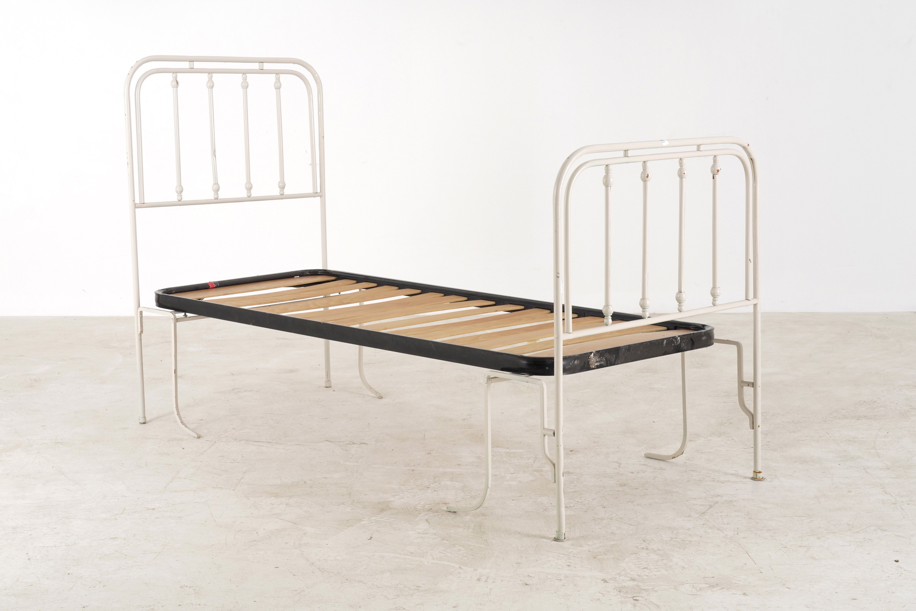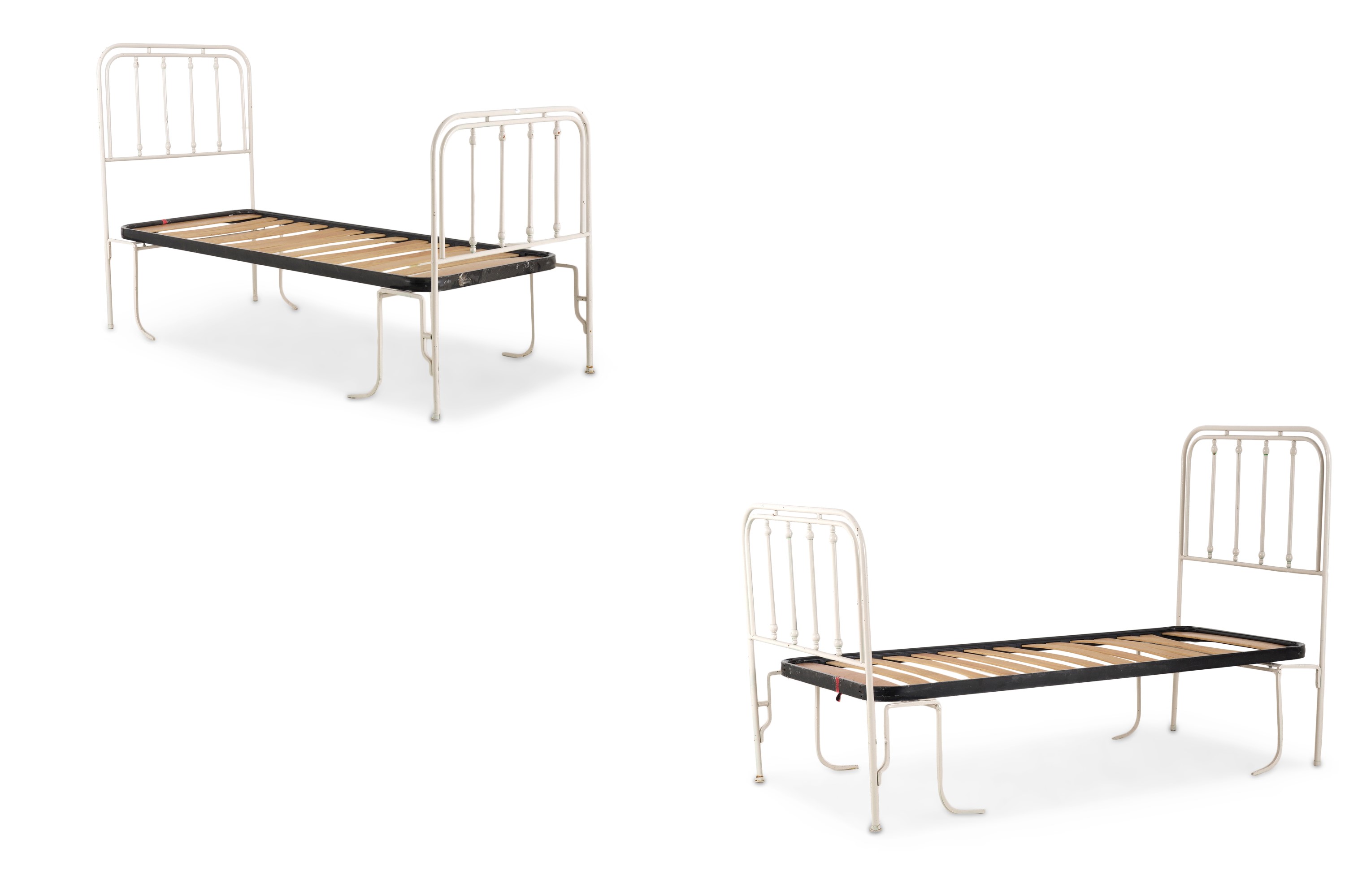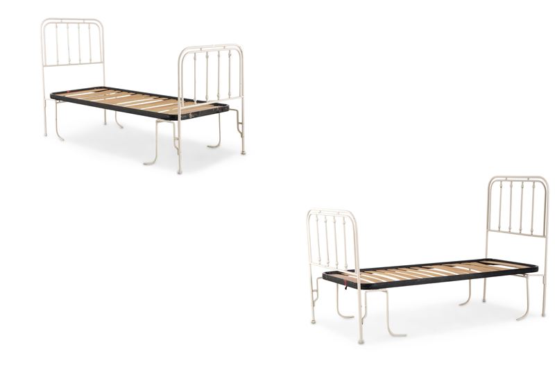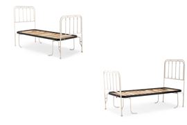 Coppia di letti singoli in ferro battuto dipinto. XX secolo