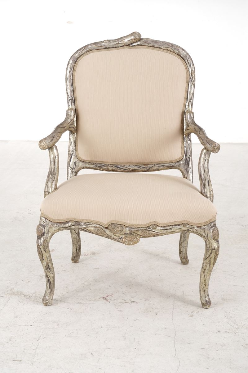 Legno intagliato, dorato e argentato a guisa di tronchi