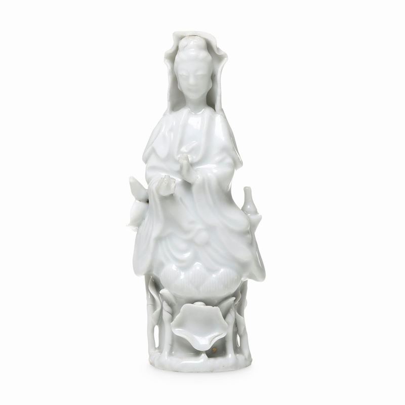 Figura di Guanyin seduta in porcellana Blanc de Chine, Cina, XIX secolo