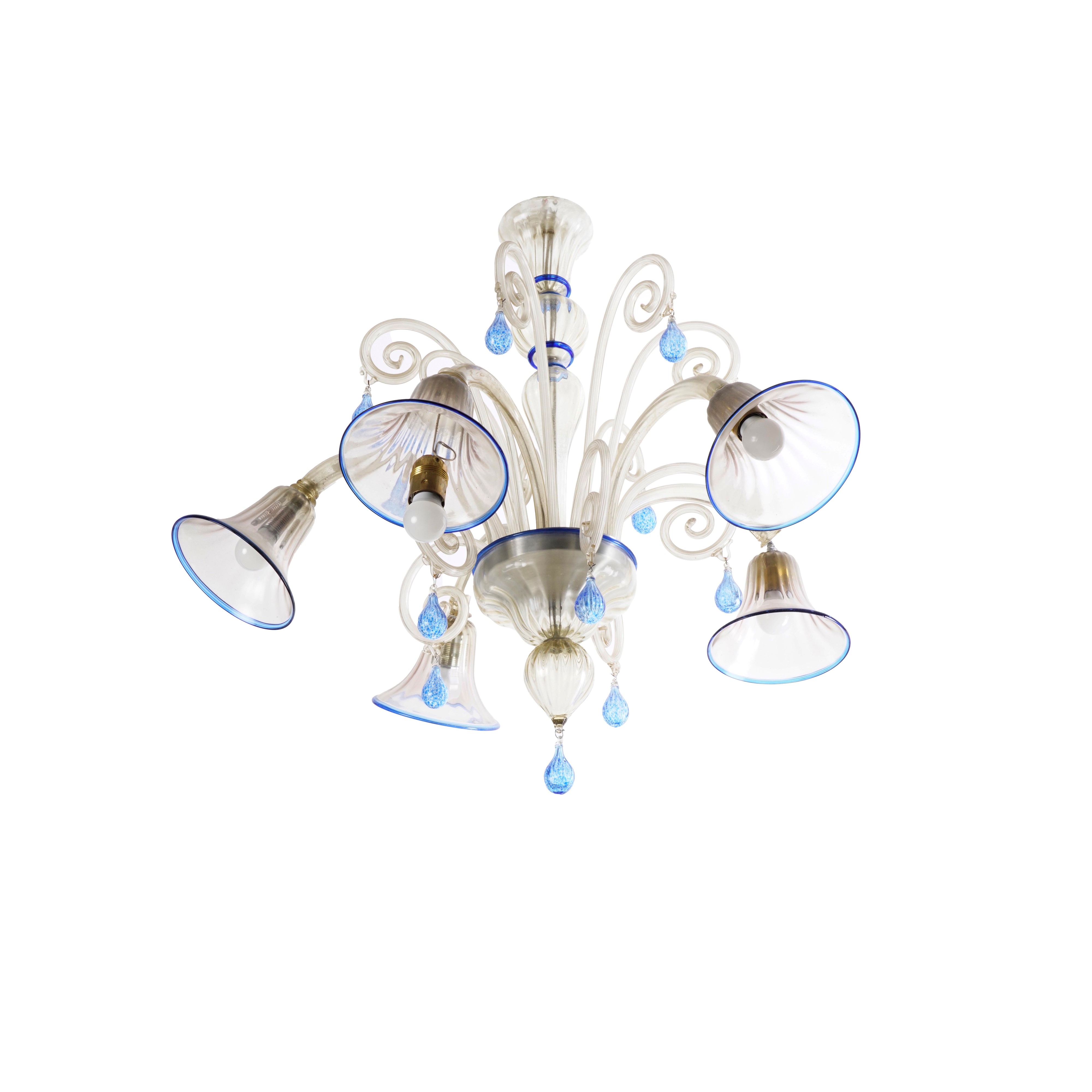 coppe a campana con bordo azzurro, bracci decorativi a volute, gocce azzurre