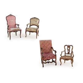 Lotto composto da quattro poltrone diverse. XVIII-XIX secolo