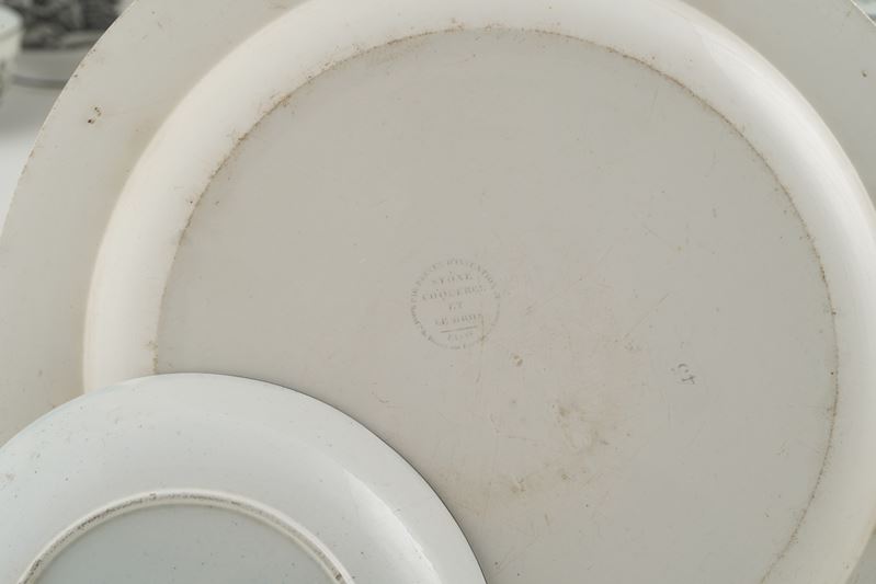 Terraglia. Marca: "Herculaneu" con corona, "Ginori" e "Creil" impressi. Conservazione: buona; segni di ossidazione su alcune tazzine da caffè; piccole sbeccature.