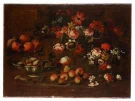 Scuola italiana del XVIII secolo Nature morte con fiori e frutti