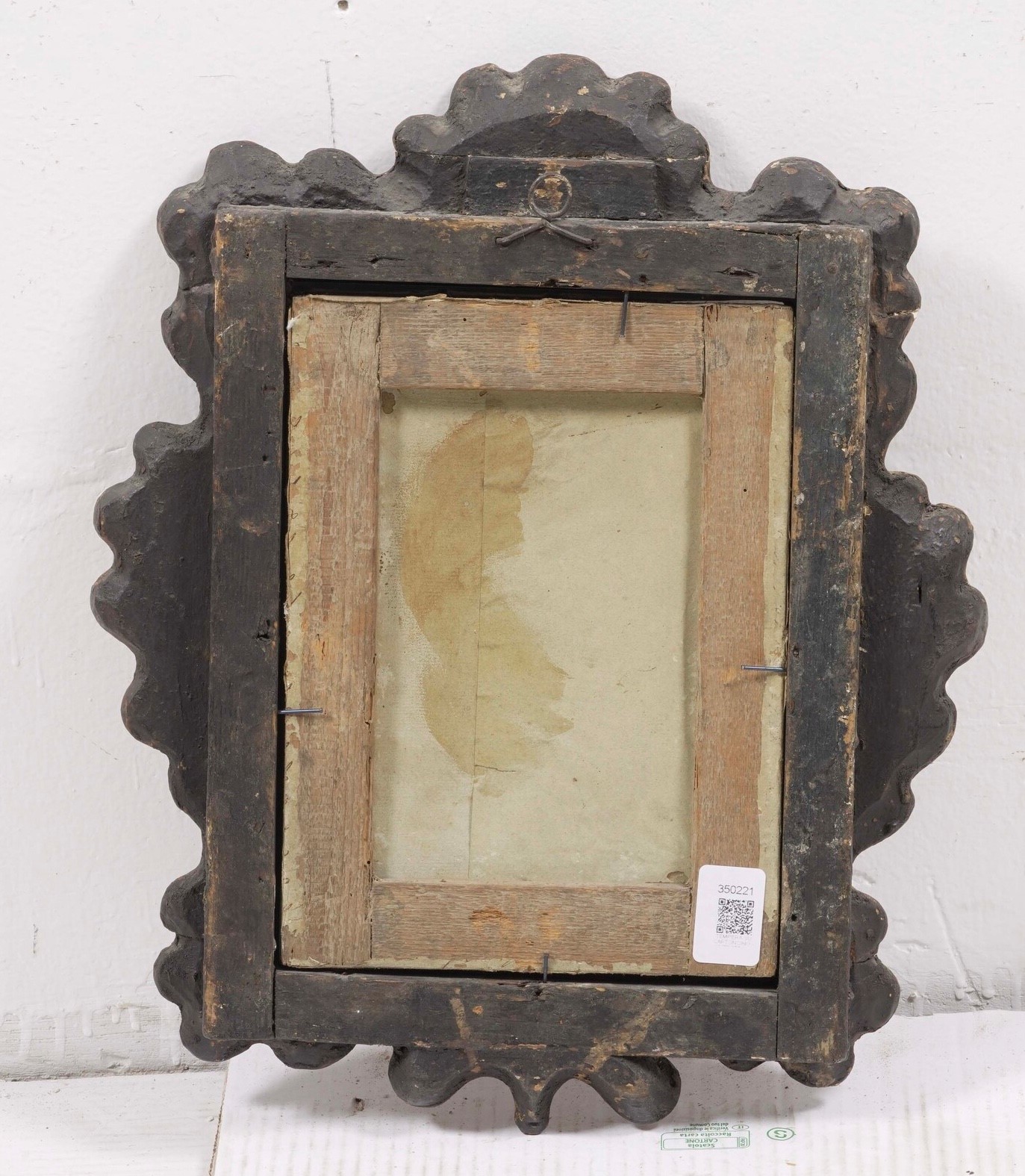 in cornice in legno intagliato e dorato
