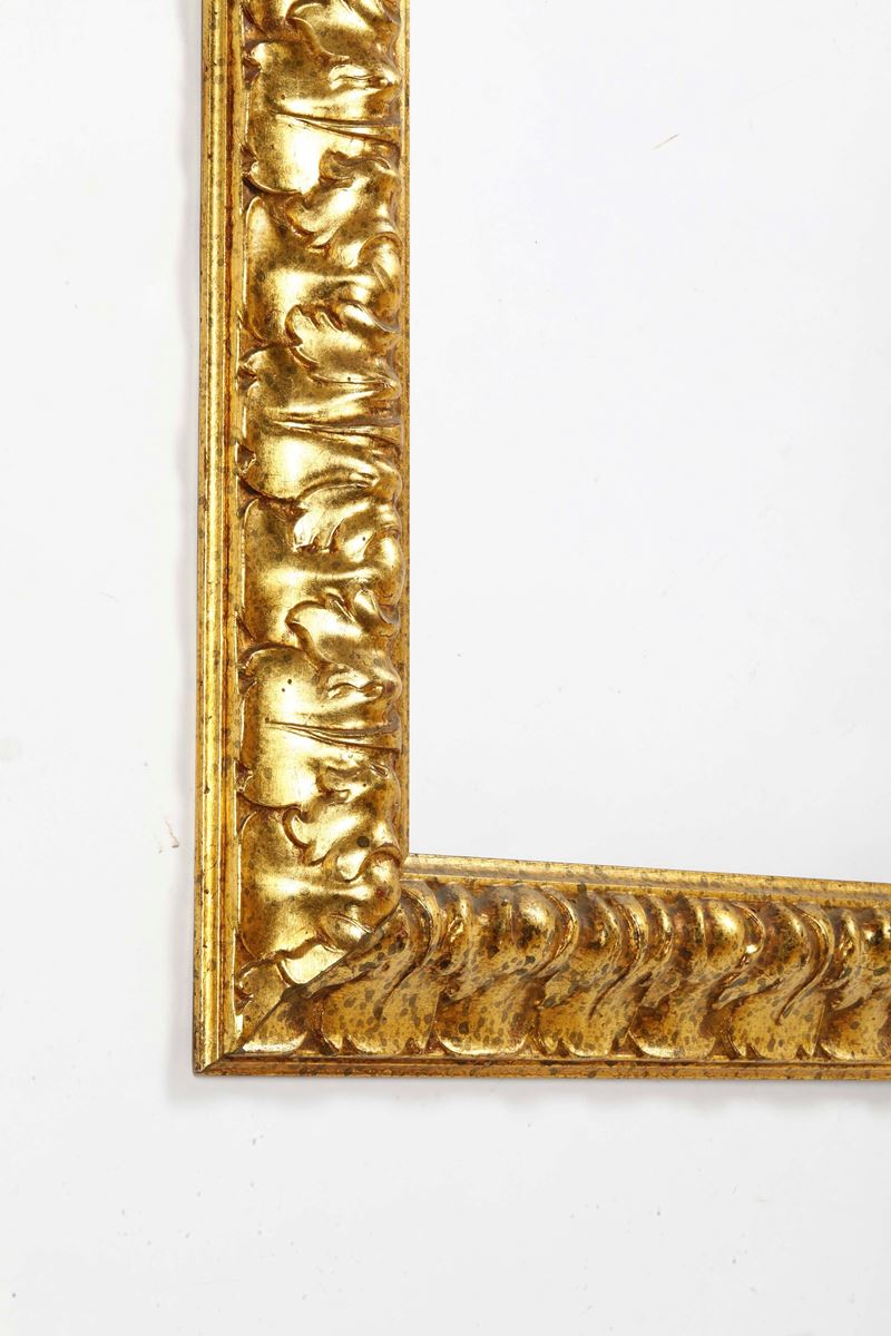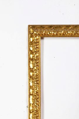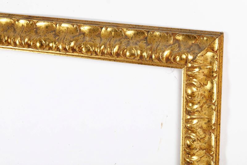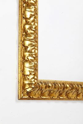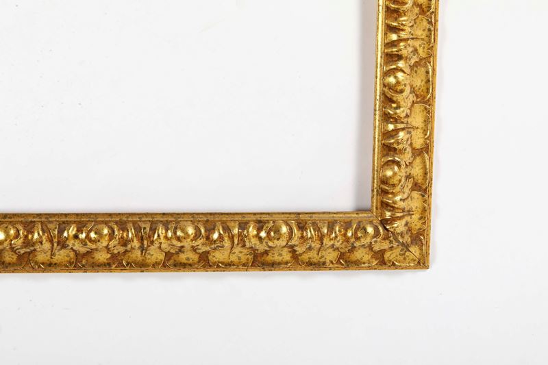 sottile battuta scende su ampia fascia decorata da larghe foglie d’acanto sovrapposte