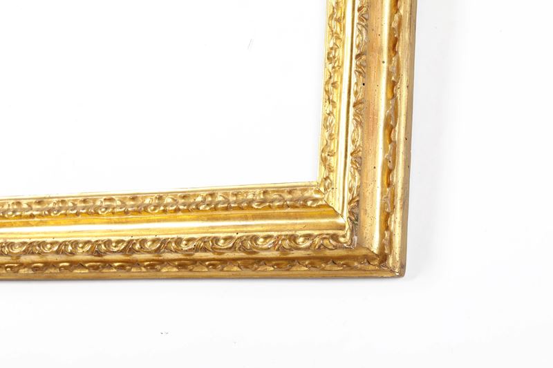 battuta liscia seguita da decoro di foglie stilizzate; profili esterno baccellato