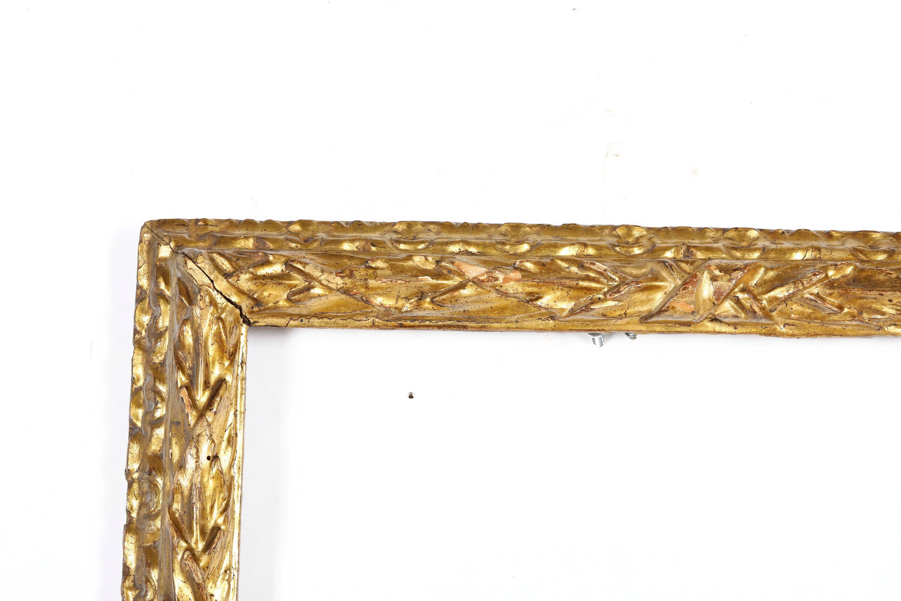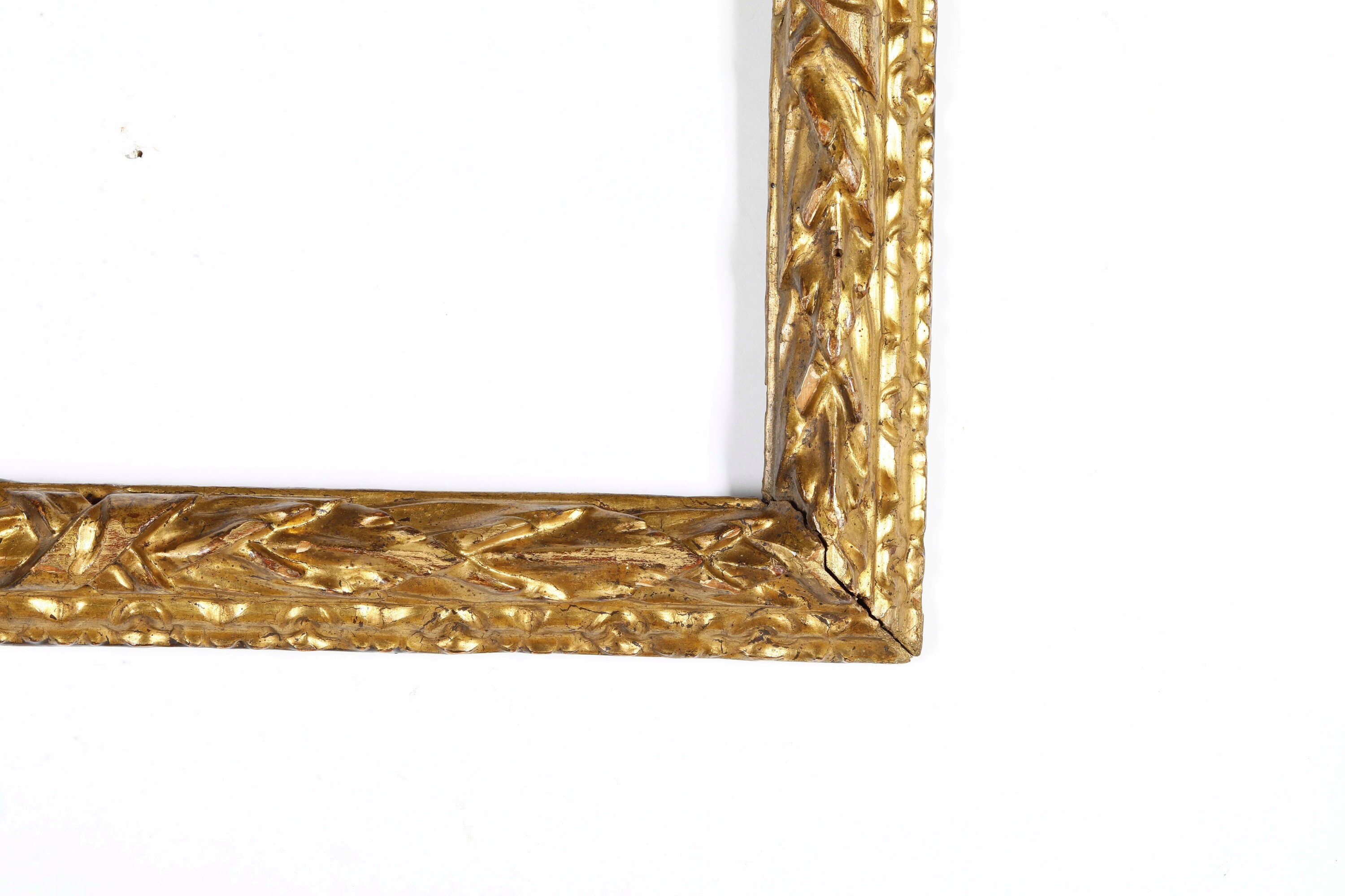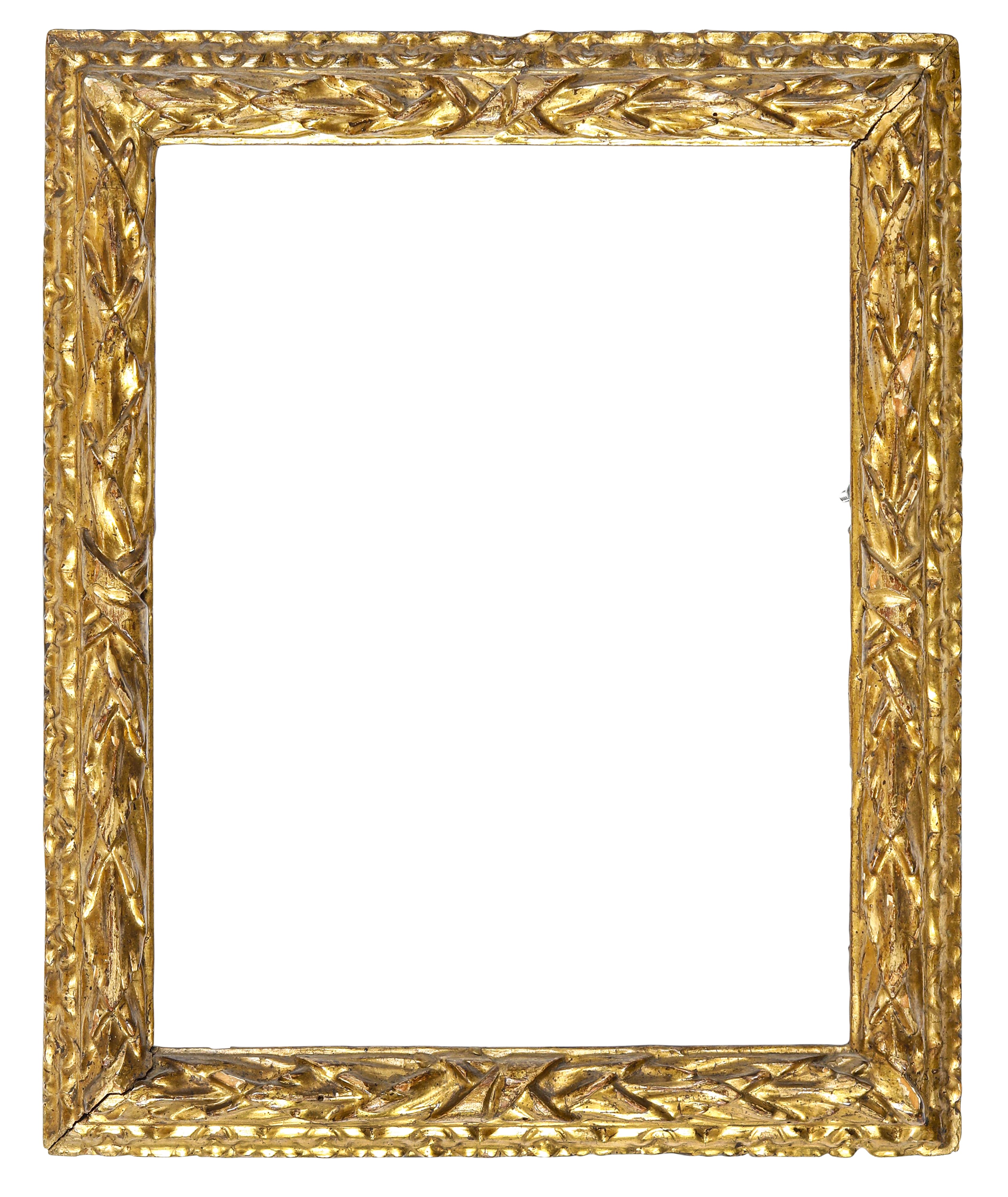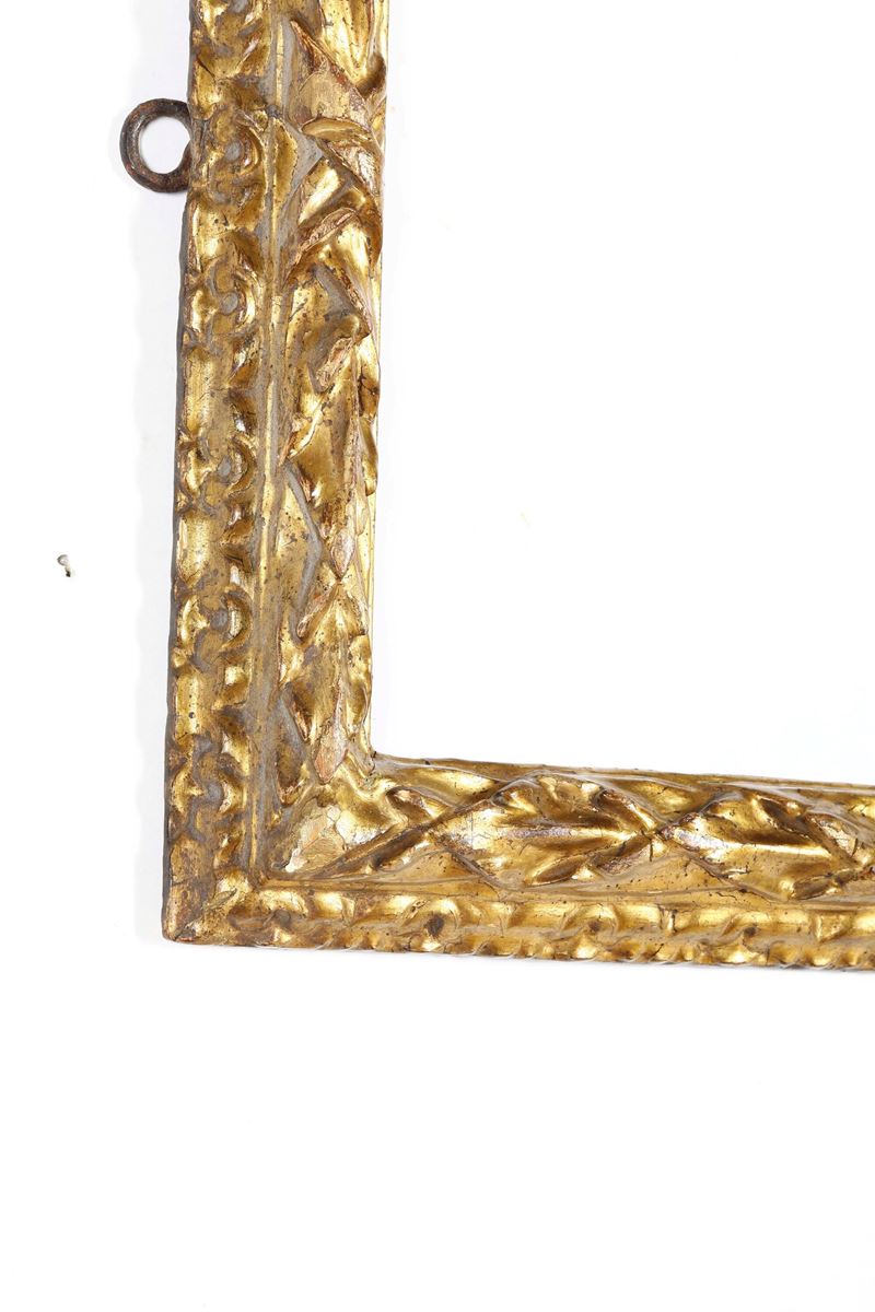 battuta liscia seguita da fascia intagliata a motivo di foglie susseguenti che si dipartono da nodi agli angoli e ai centri