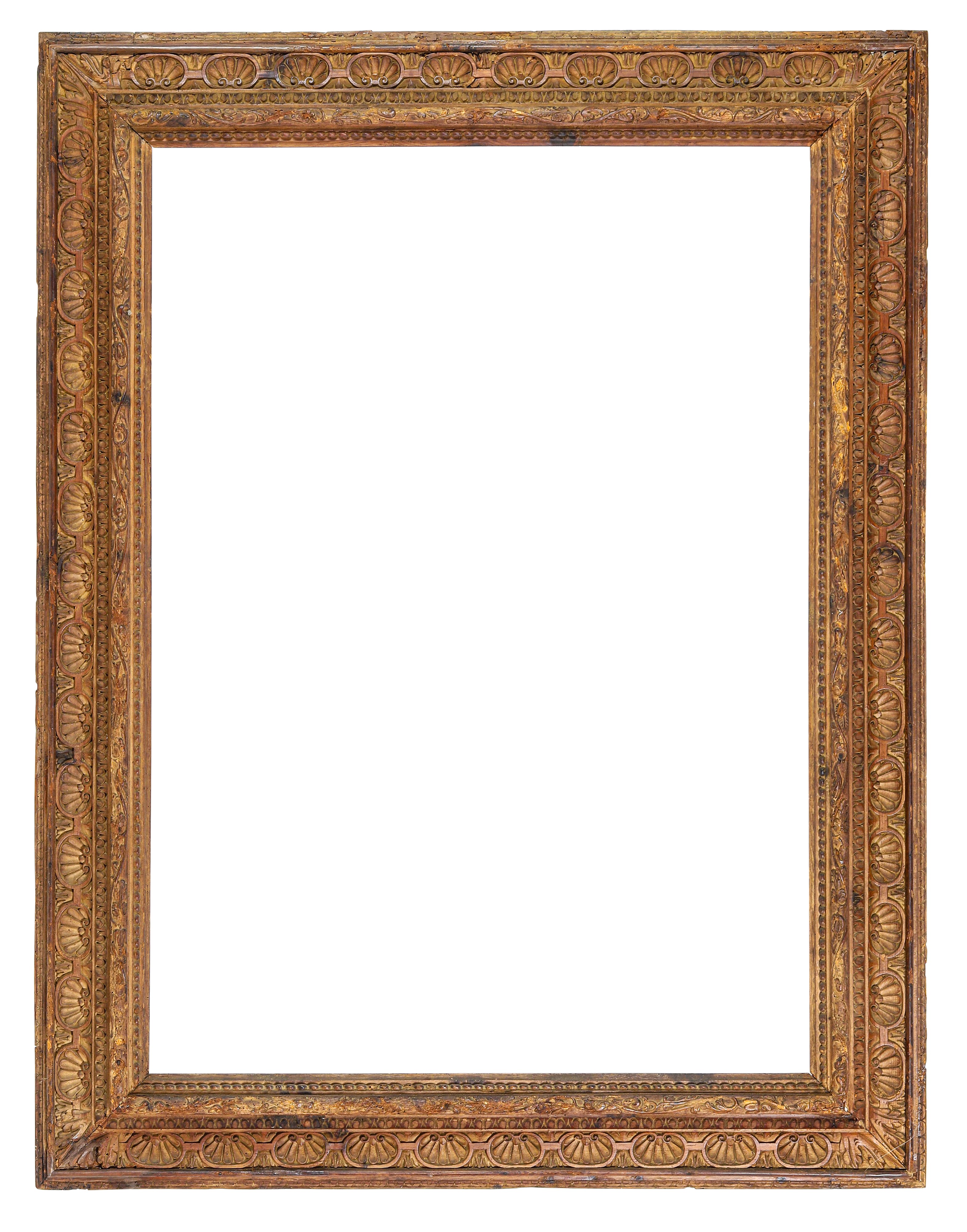 battuta a gola liscia seguita da profilo perlinato, fascia intagliata a conchiglie