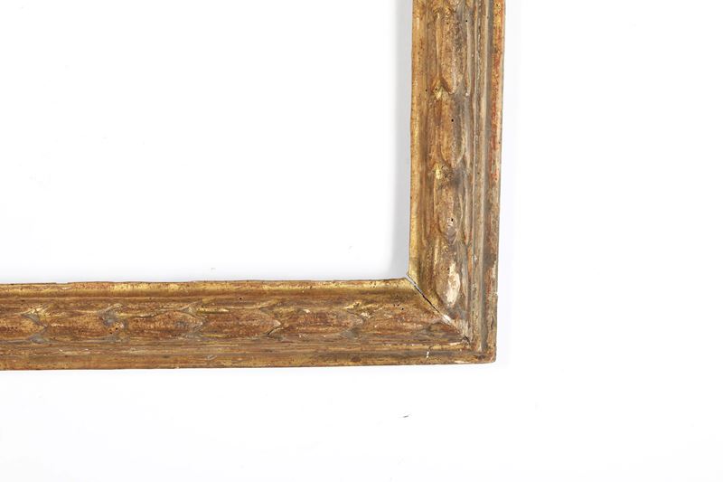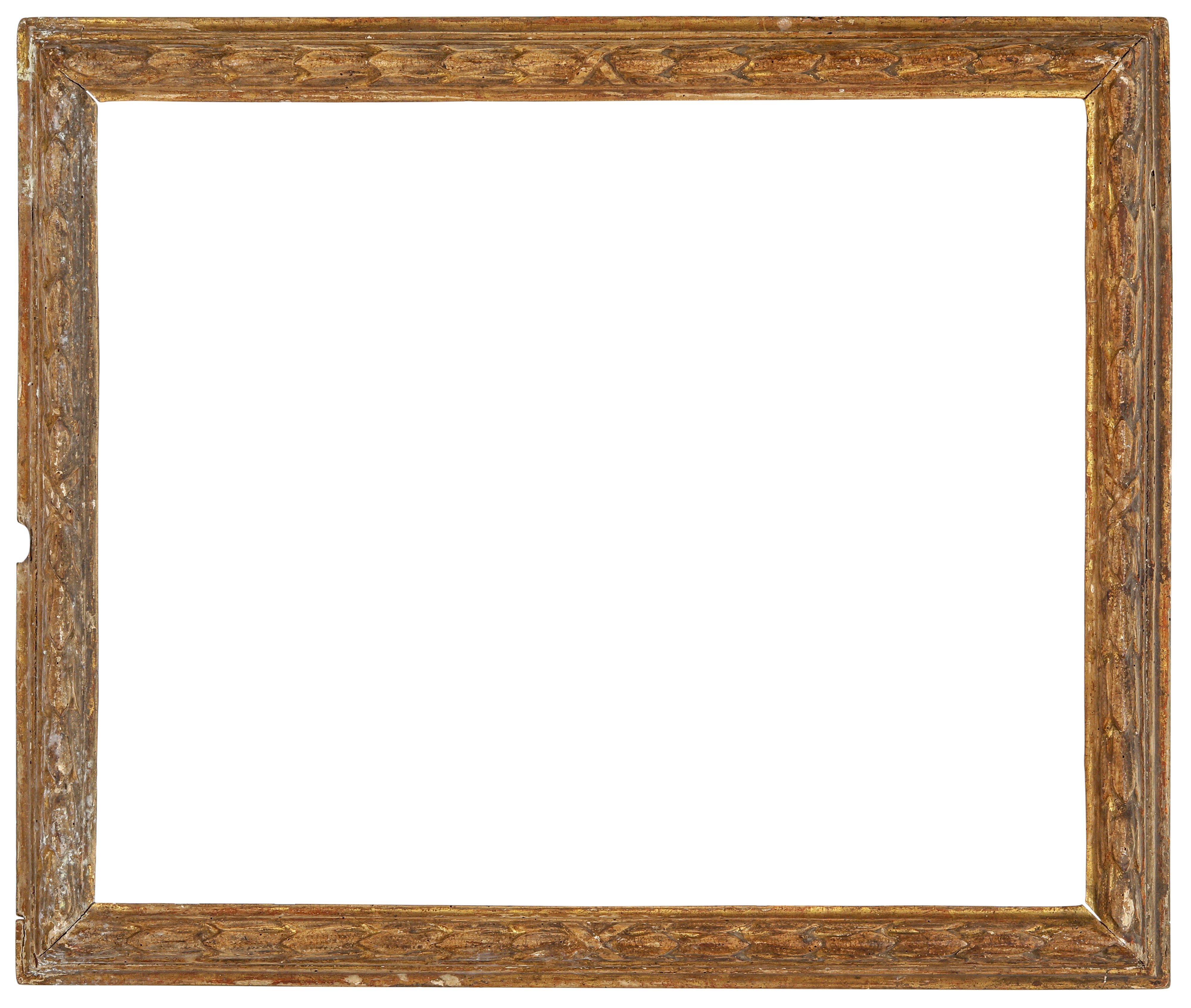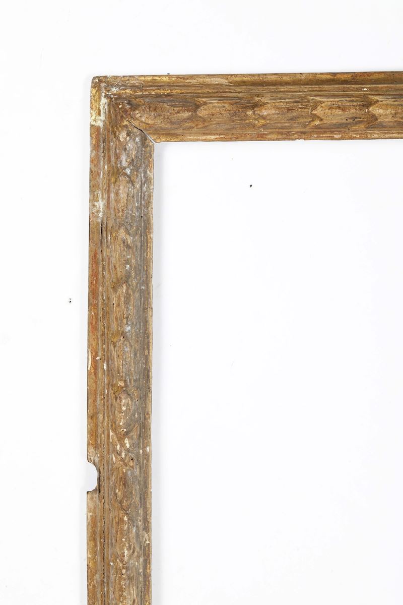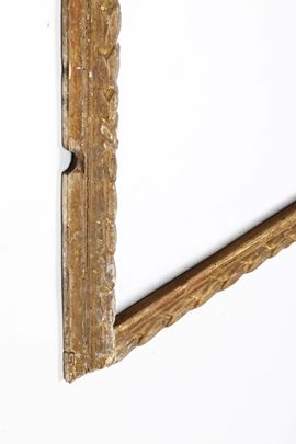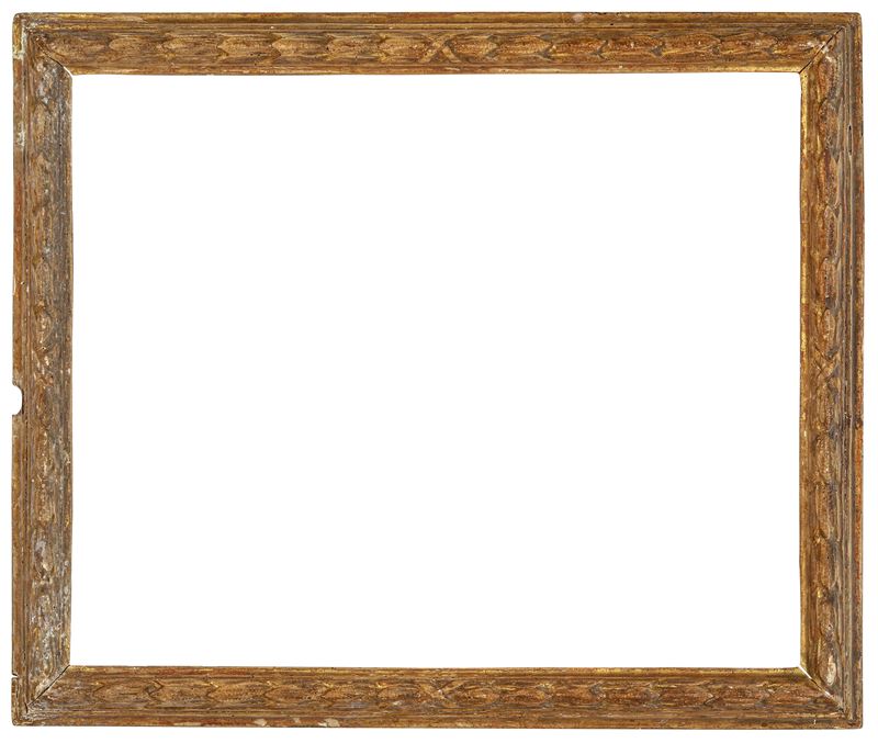 battuta dorata si apre su fascia intagliata a fiori ricorrenti racchiuse da nastri ai centri e agli angoli (difetti)