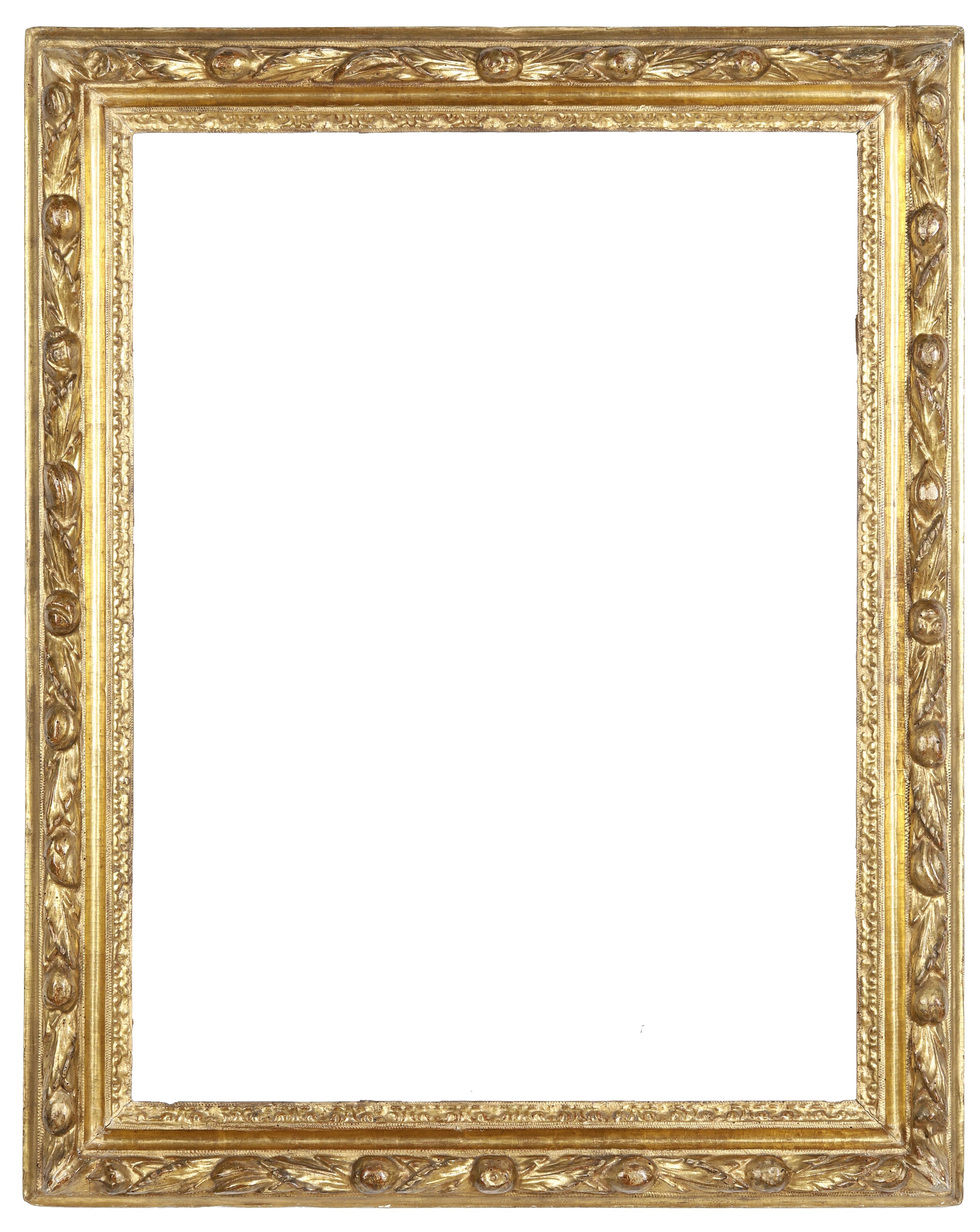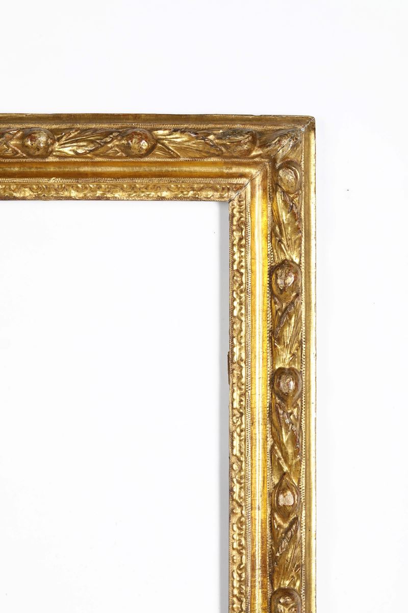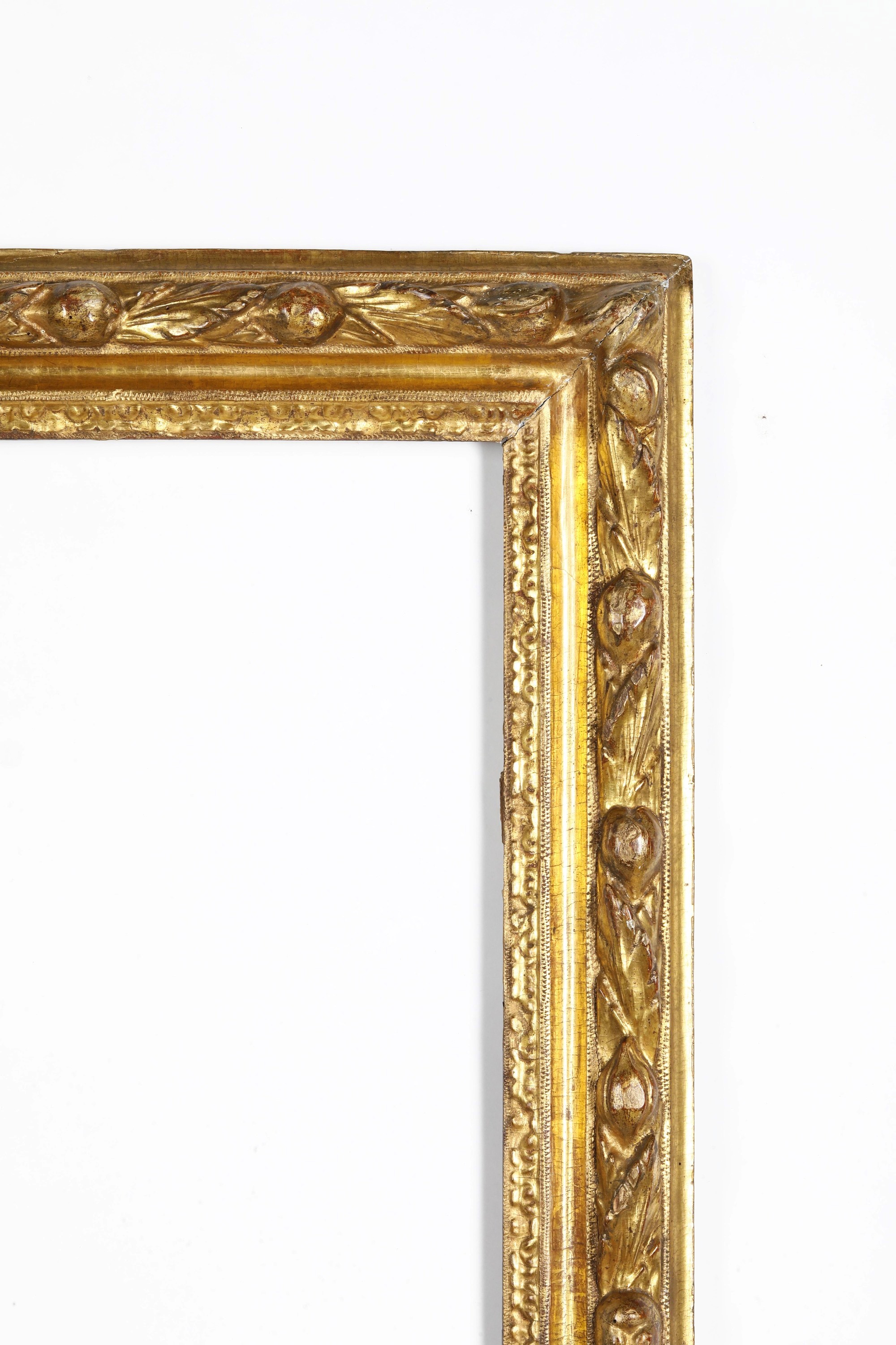battuta intagliata a mezze foglie, fascia decorata da motivo di frutta e foglie susseguenti