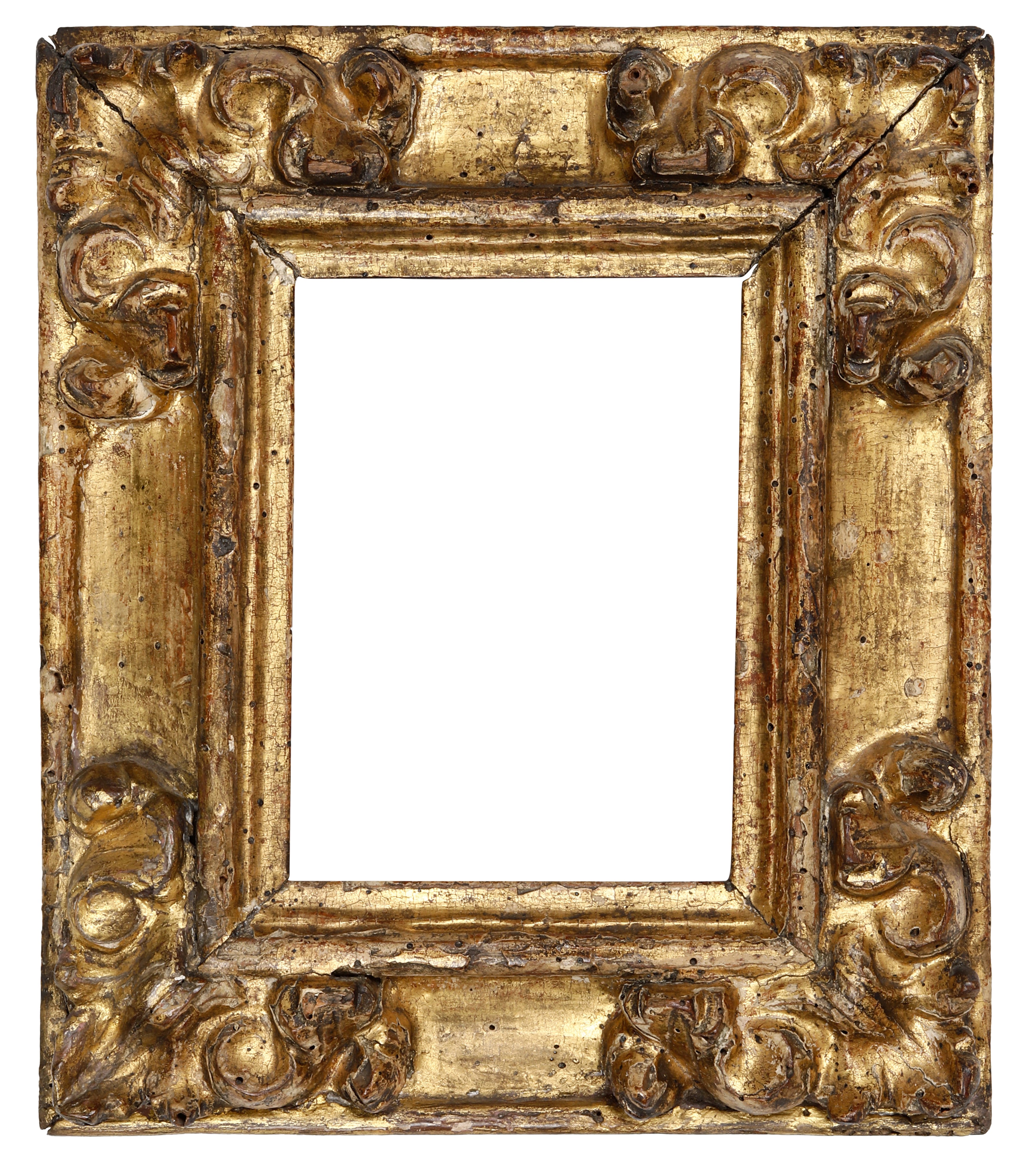 battuta liscia, fascia intagliati agli angoli con volute e conchiglie