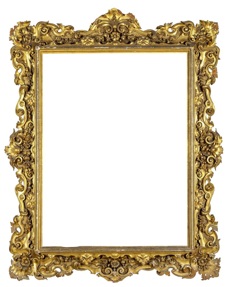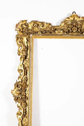 battuta a gole lisce seguita da ampia fascia con decori a volute ed elementi floreali