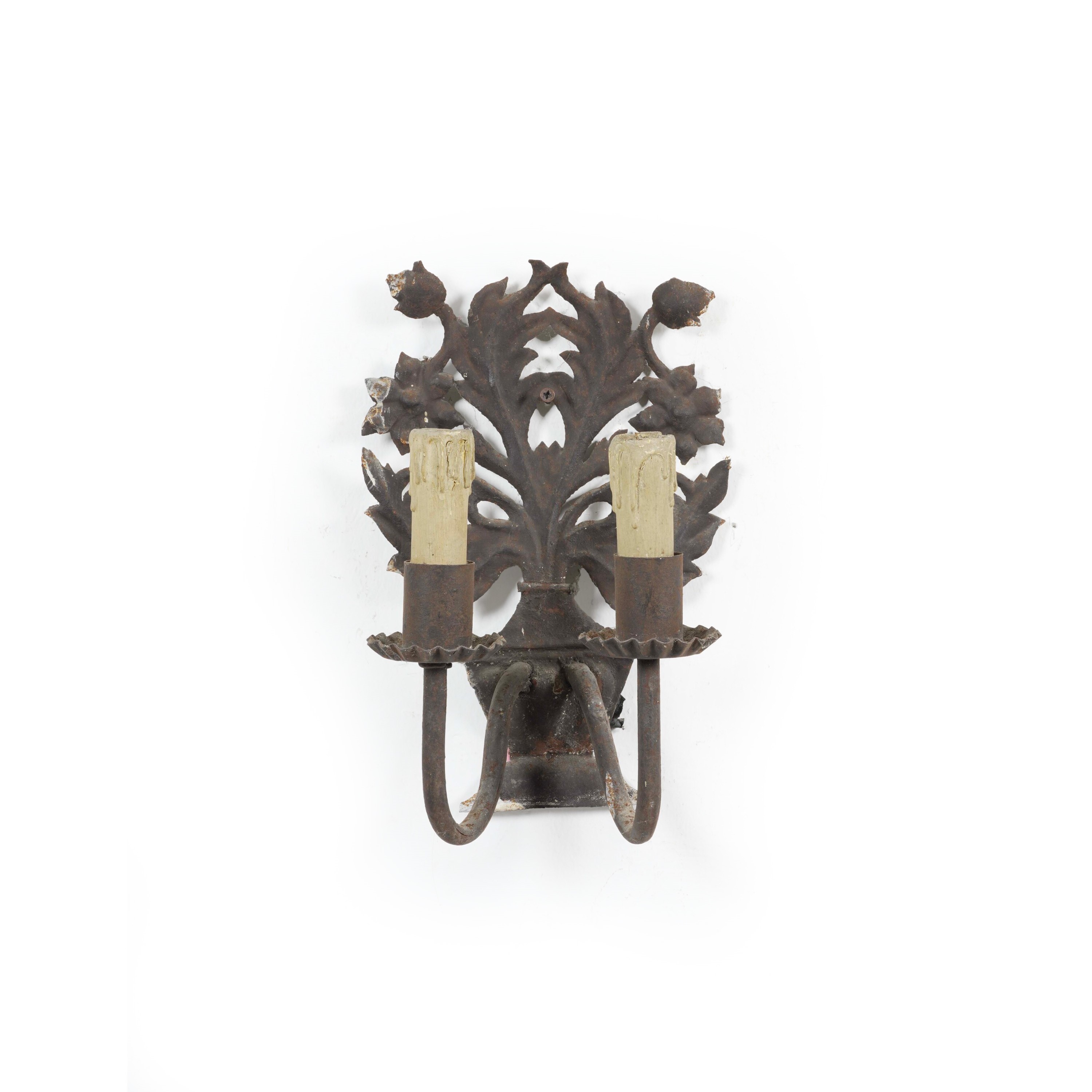 Applique a due luci in ferro a guisa di vaso di fiori