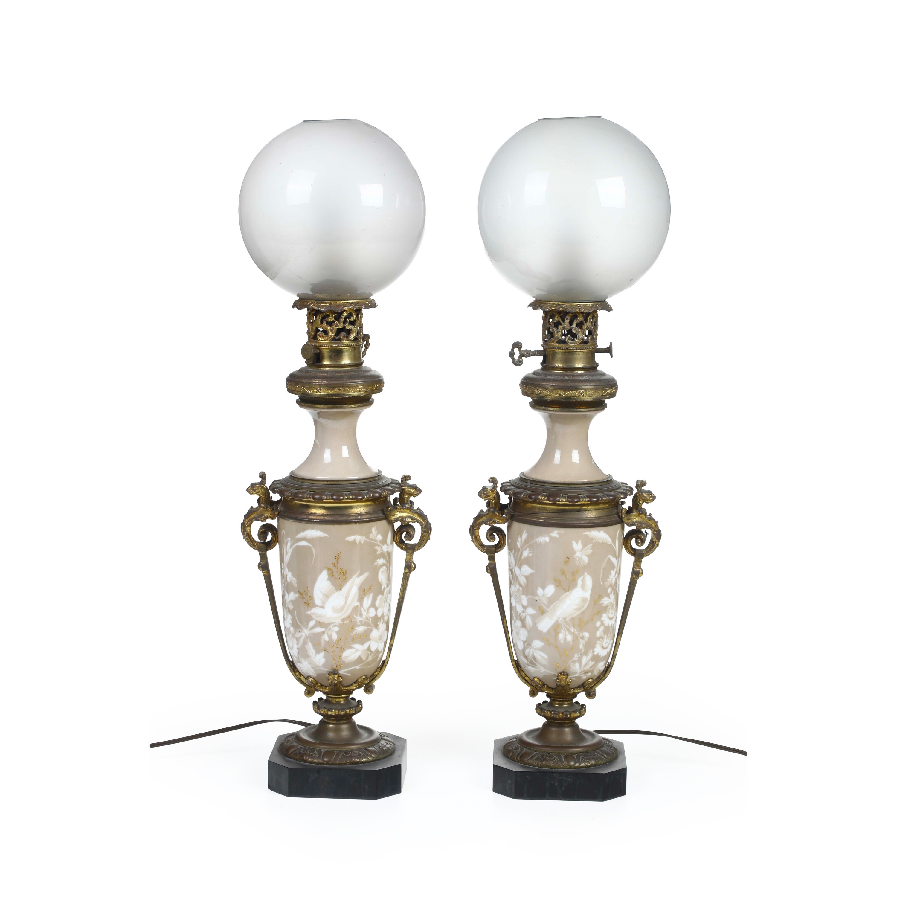 Coppia di lampade a petrolio elettrificate. Francia, ultimo quarto del XIX secolo.