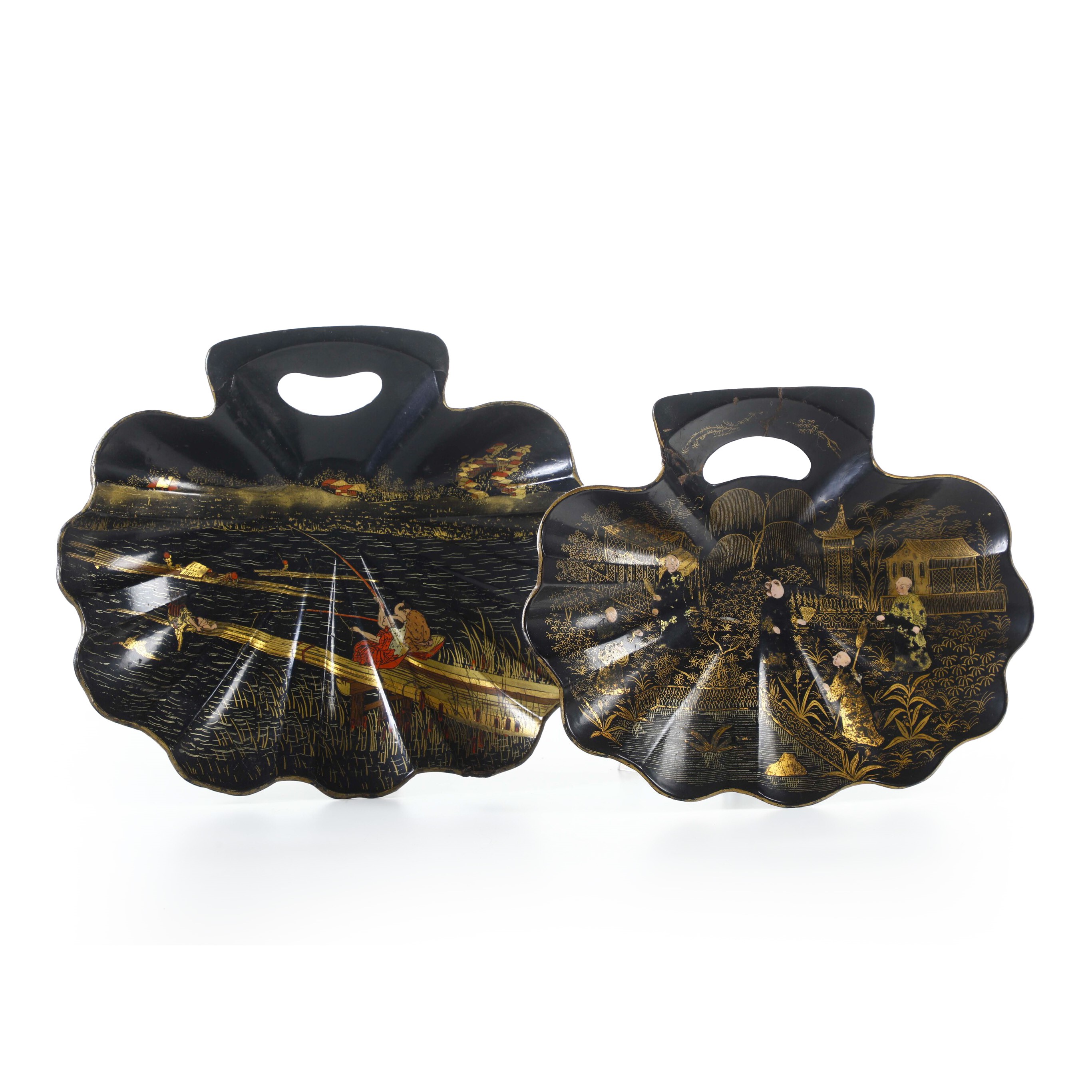 Due vassoi in lacca raffiguranti scena di vita comune, Giappone, XIX secolo