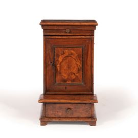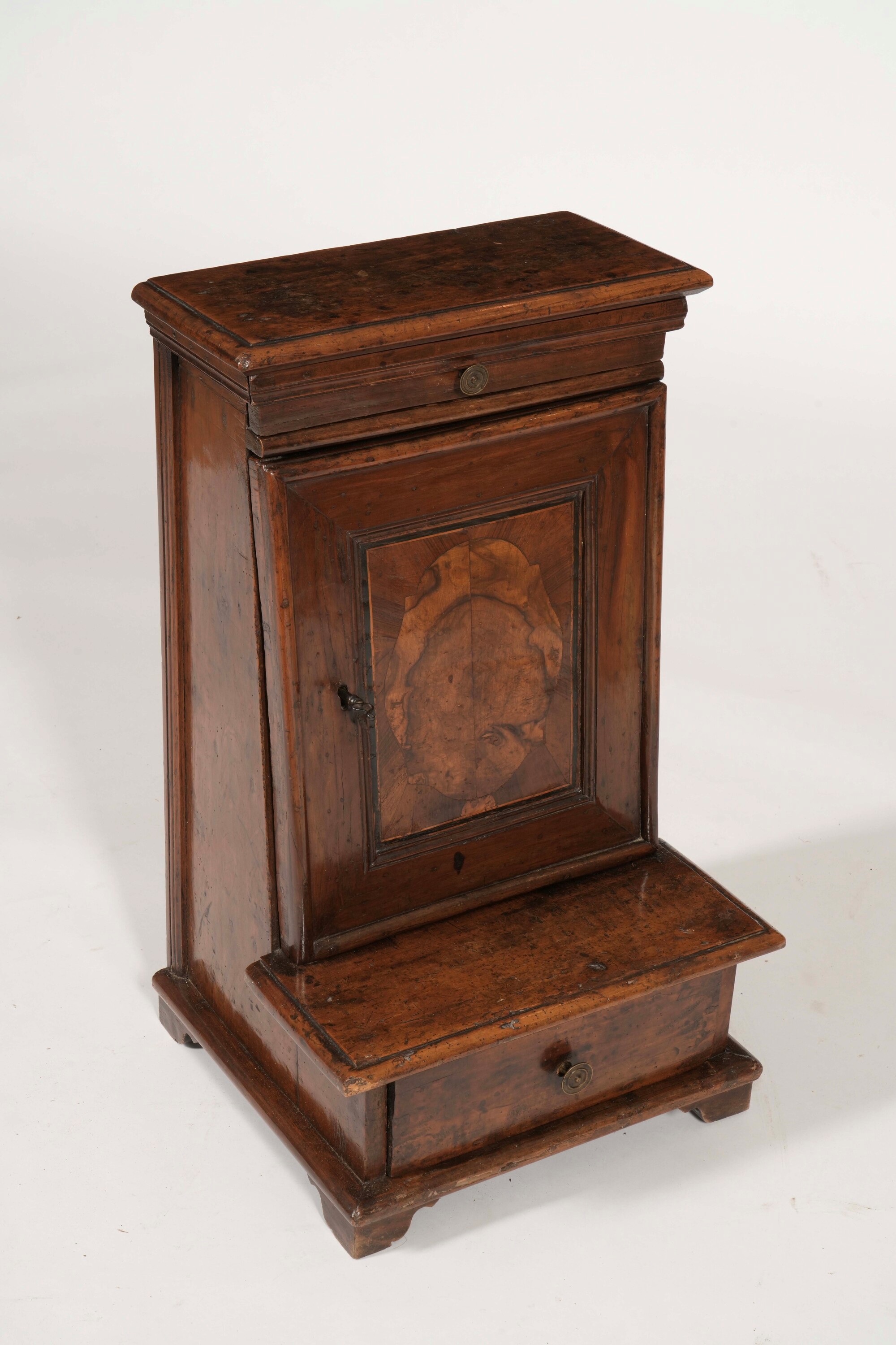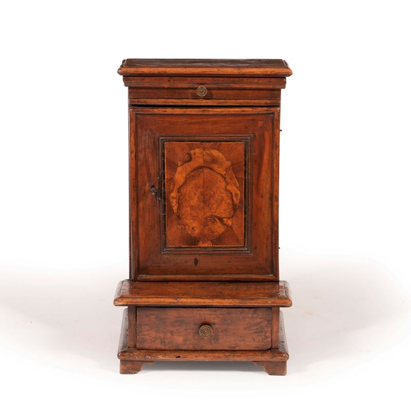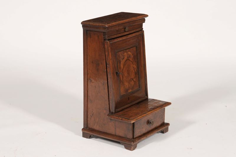 Inginocchiatoio in noce e radica. Elementi antichi