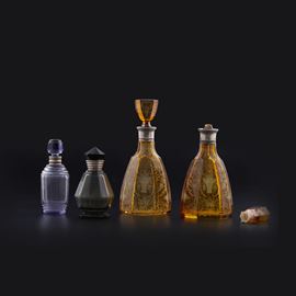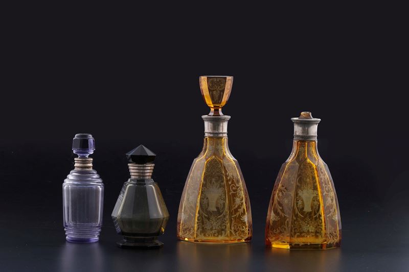 Lotto di quattro bottiglie in vetro. XIX-XX secolo
