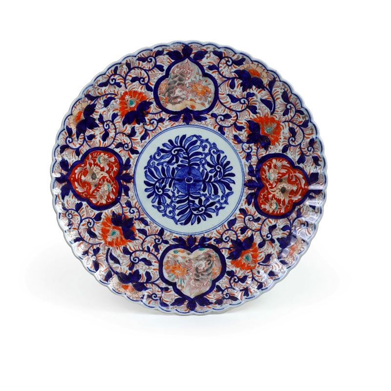 Piatto in porcellana Imari con decori floreali e vegetali, Giappone, XIX secolo