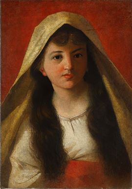 Pittore del XIX-XX secolo Giovane contadina con velo