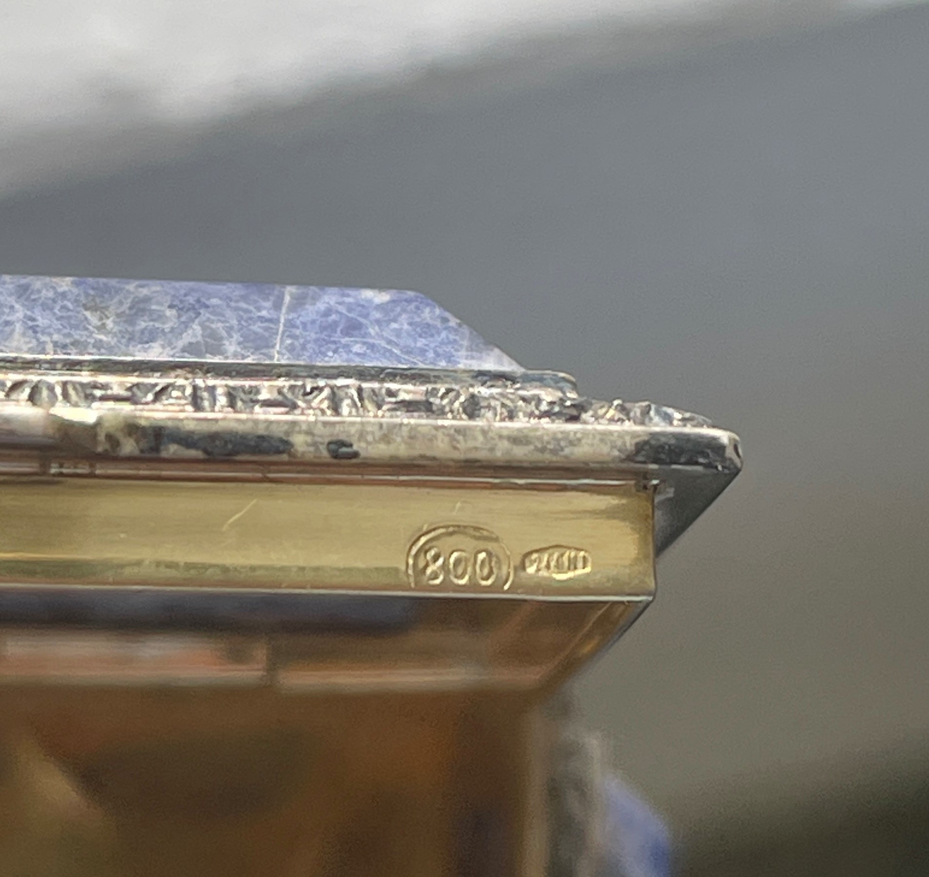 Scatola in marmo sodalite blu con montatura in argento. Argenteria milanese del XX secolo, argentiere Eredi Mazzetti